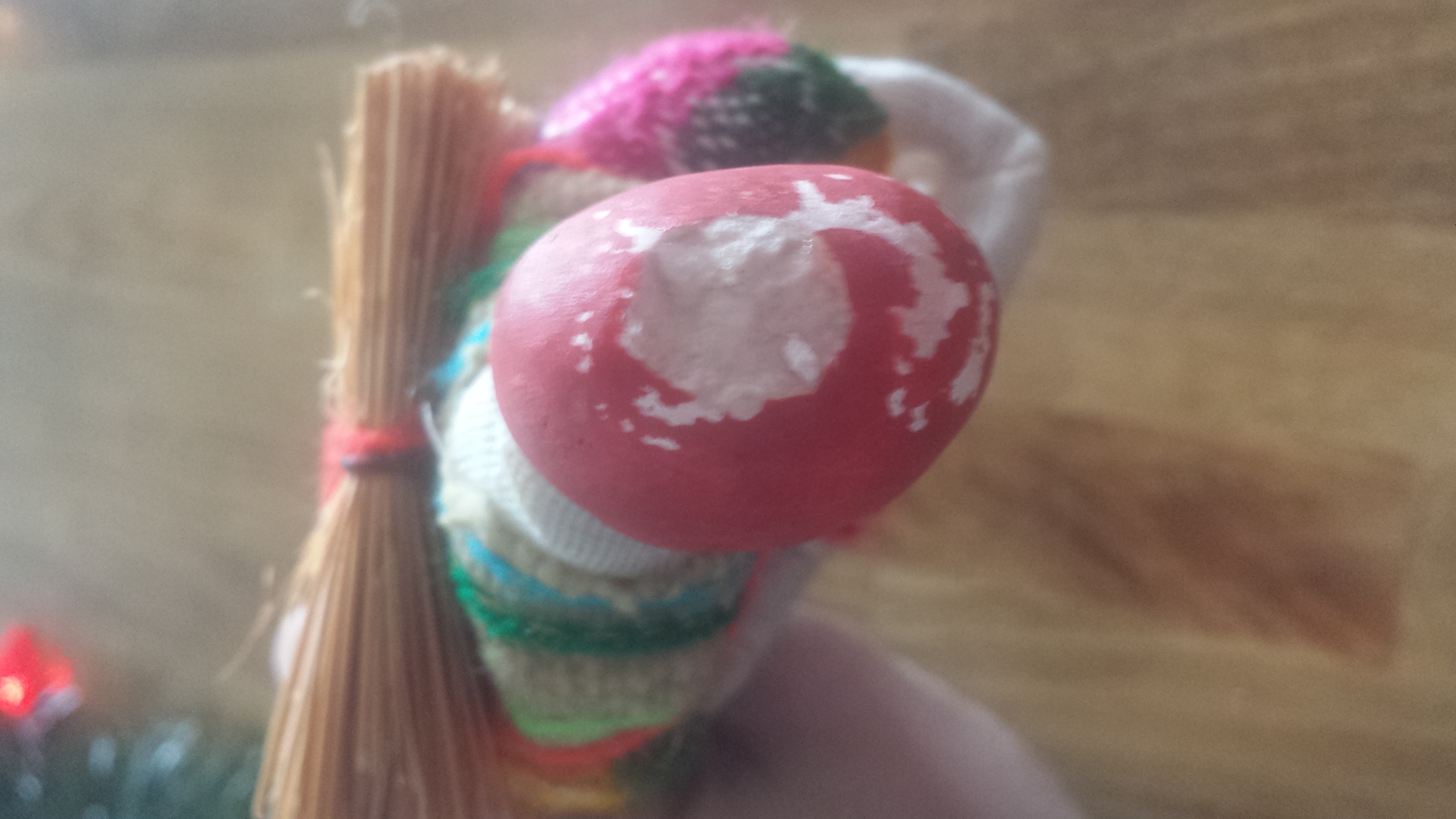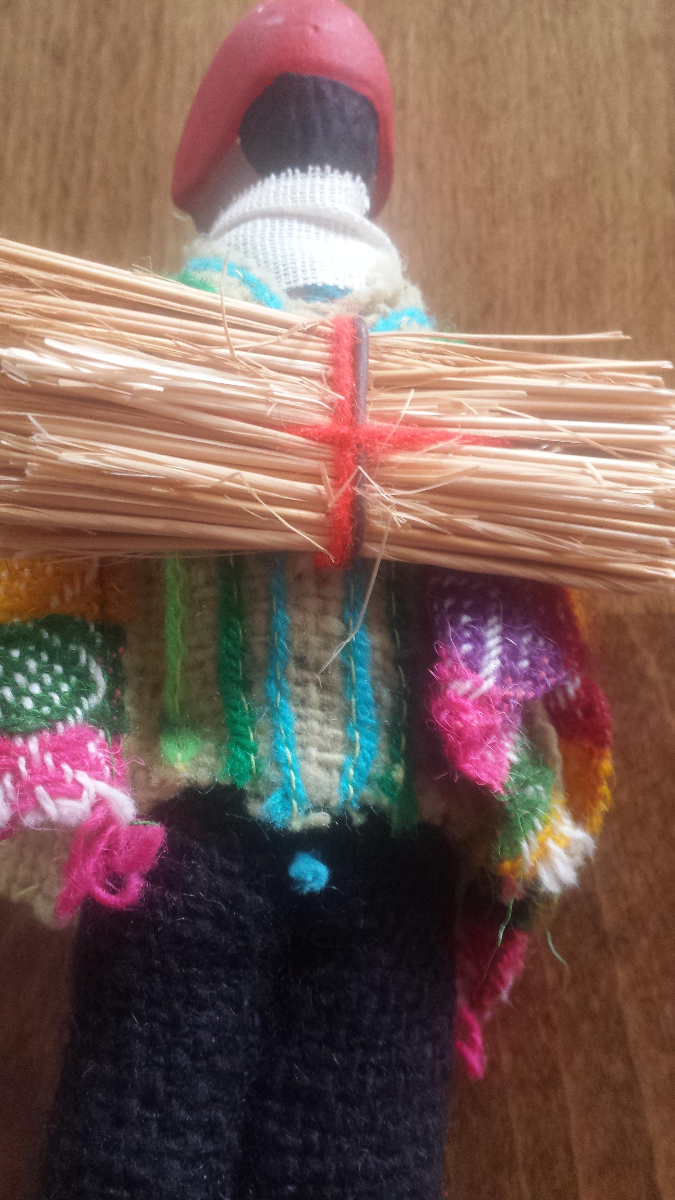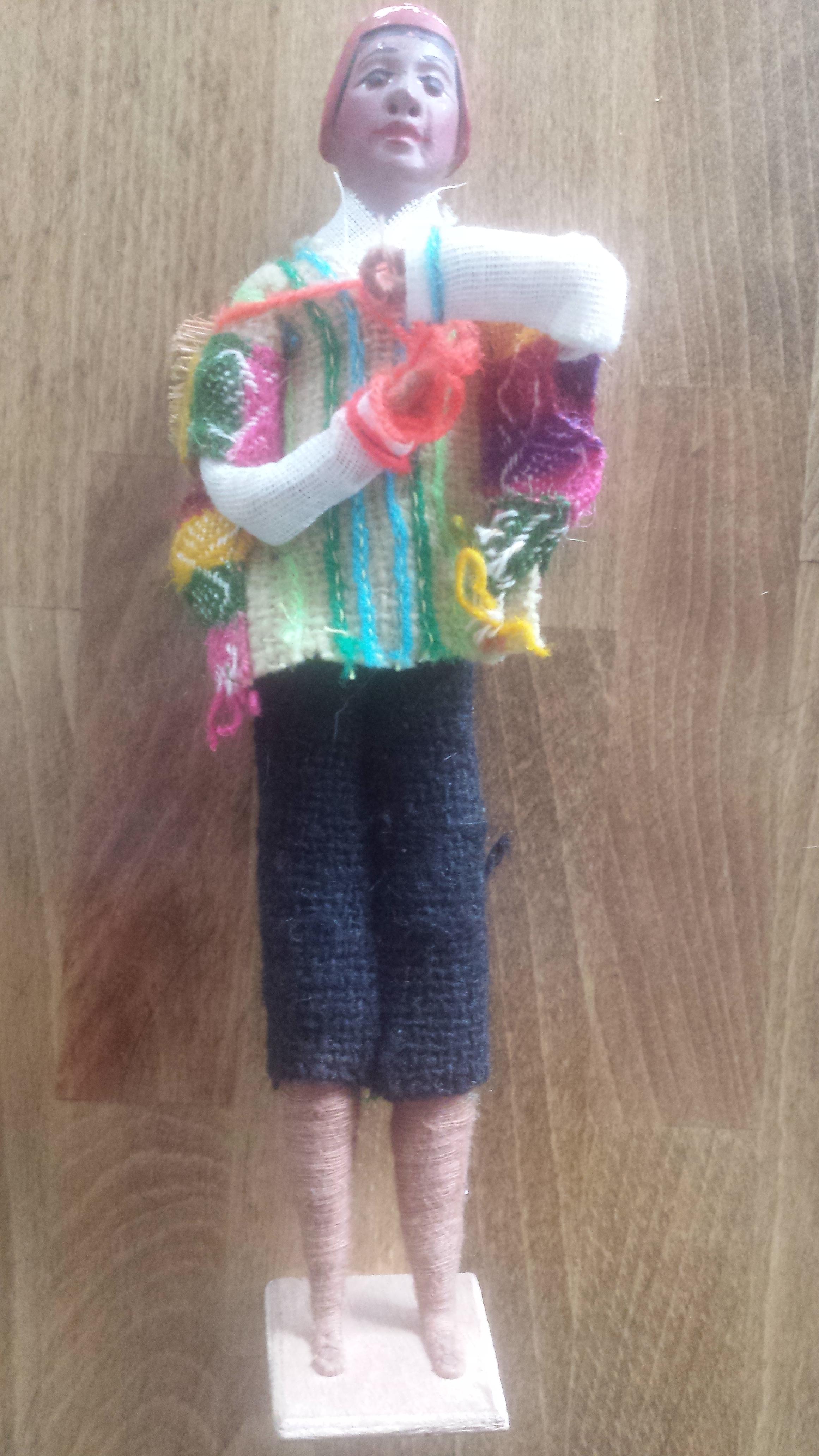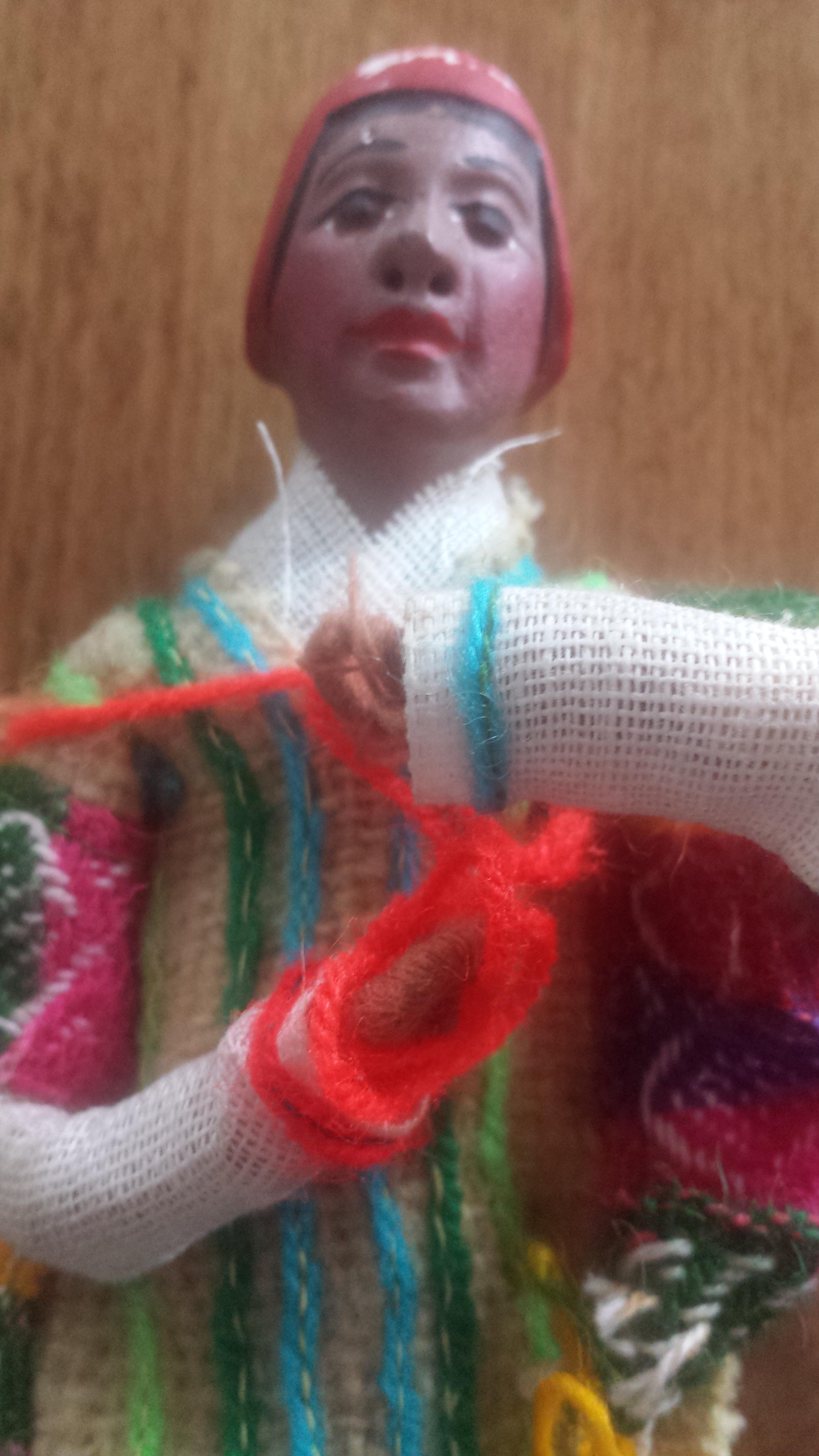 I bought this at a local flea market. I honestly know nothing about it! I just thought it was neat! It's handmade. .not sure of exact materials. It has "Peru" handwritten on bottom of platform. The top of the head is damaged, but in good condition otherwise. It has hand stitched cloth on the figure. .wood possibly? Any info would be great! Thanks!