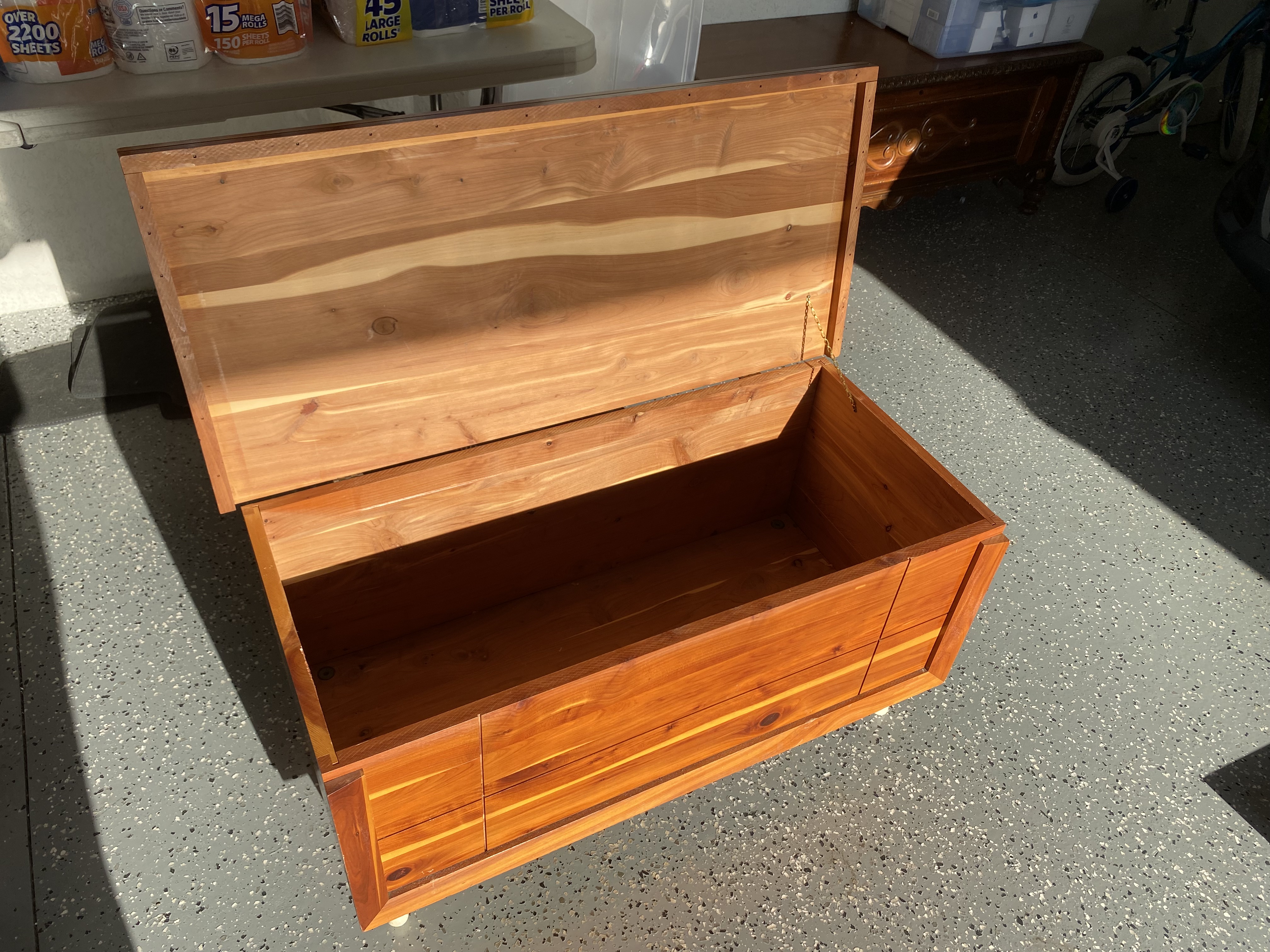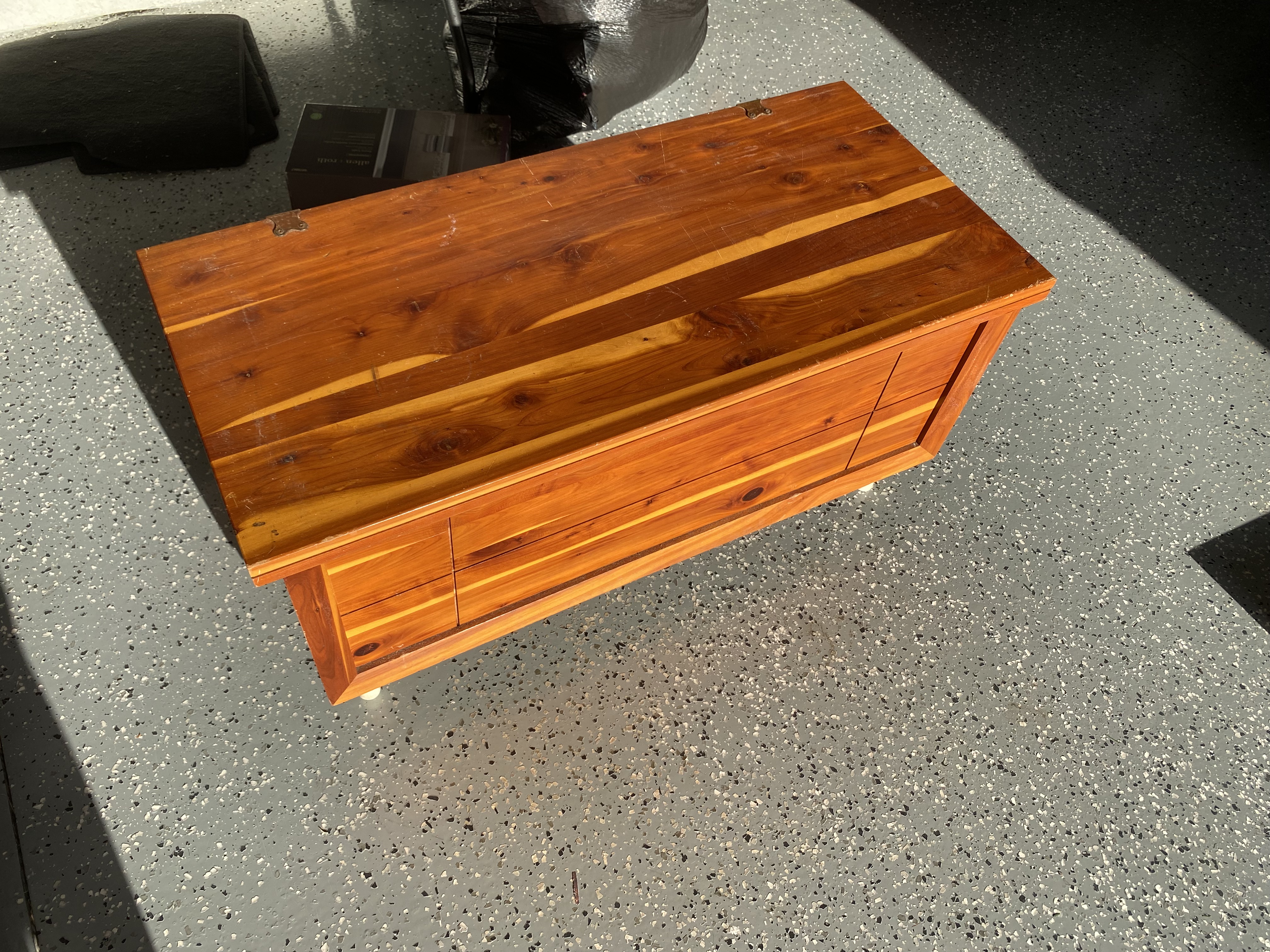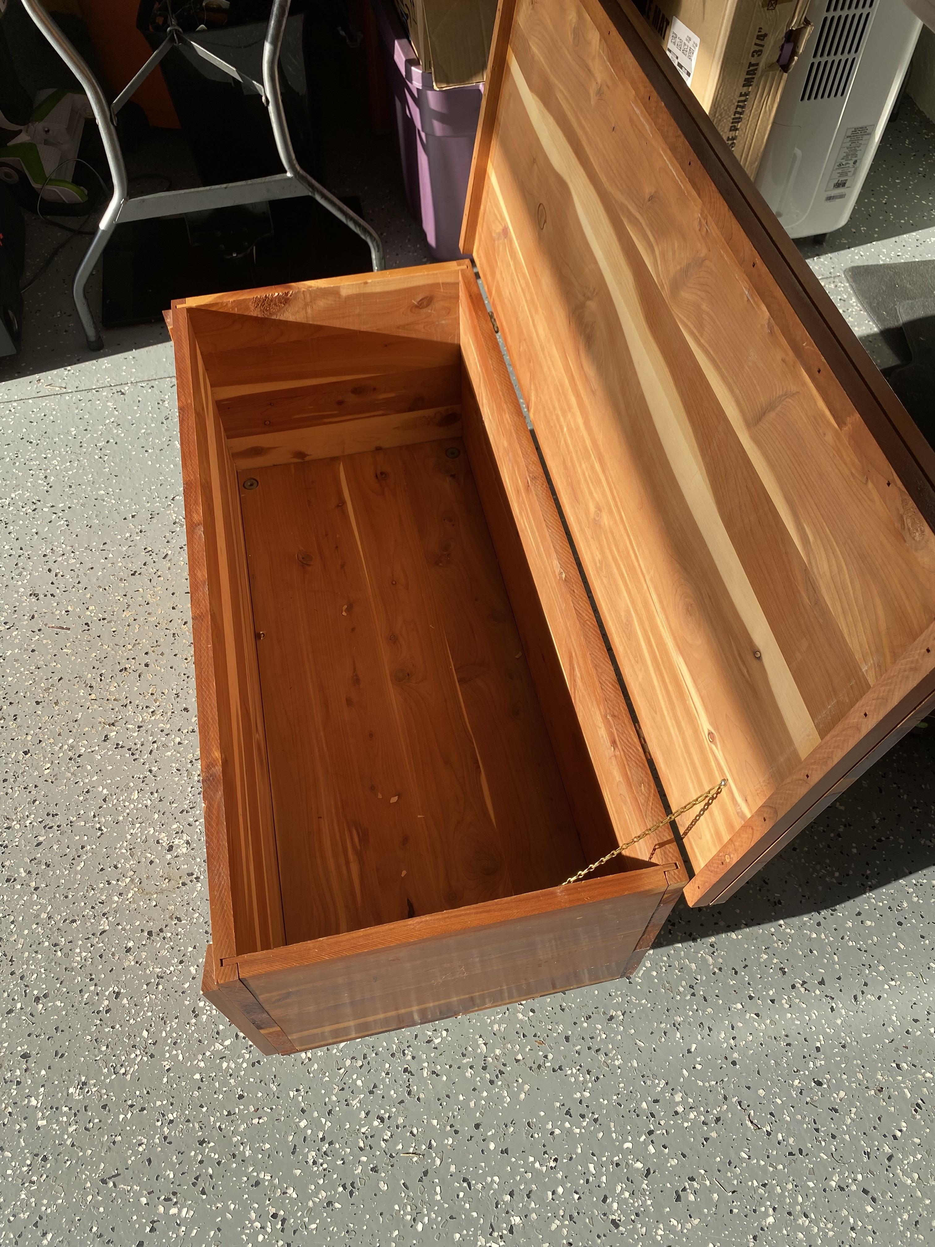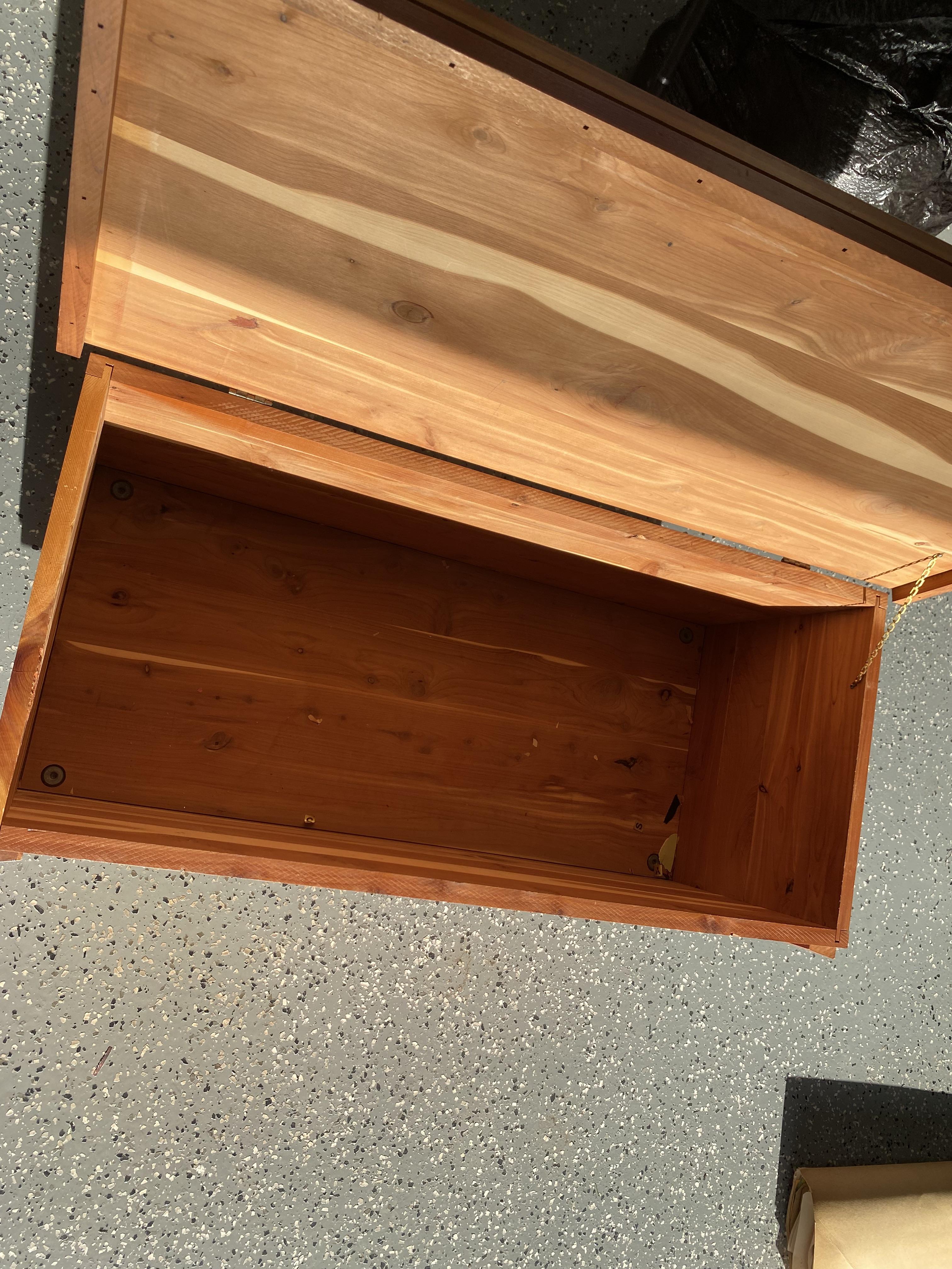 This is a solid cedar chest that was handmade by someone in my family lineage. It is a small chest and was most likely made in Oklahoma, Tennessee, or Mississippi before 1930.