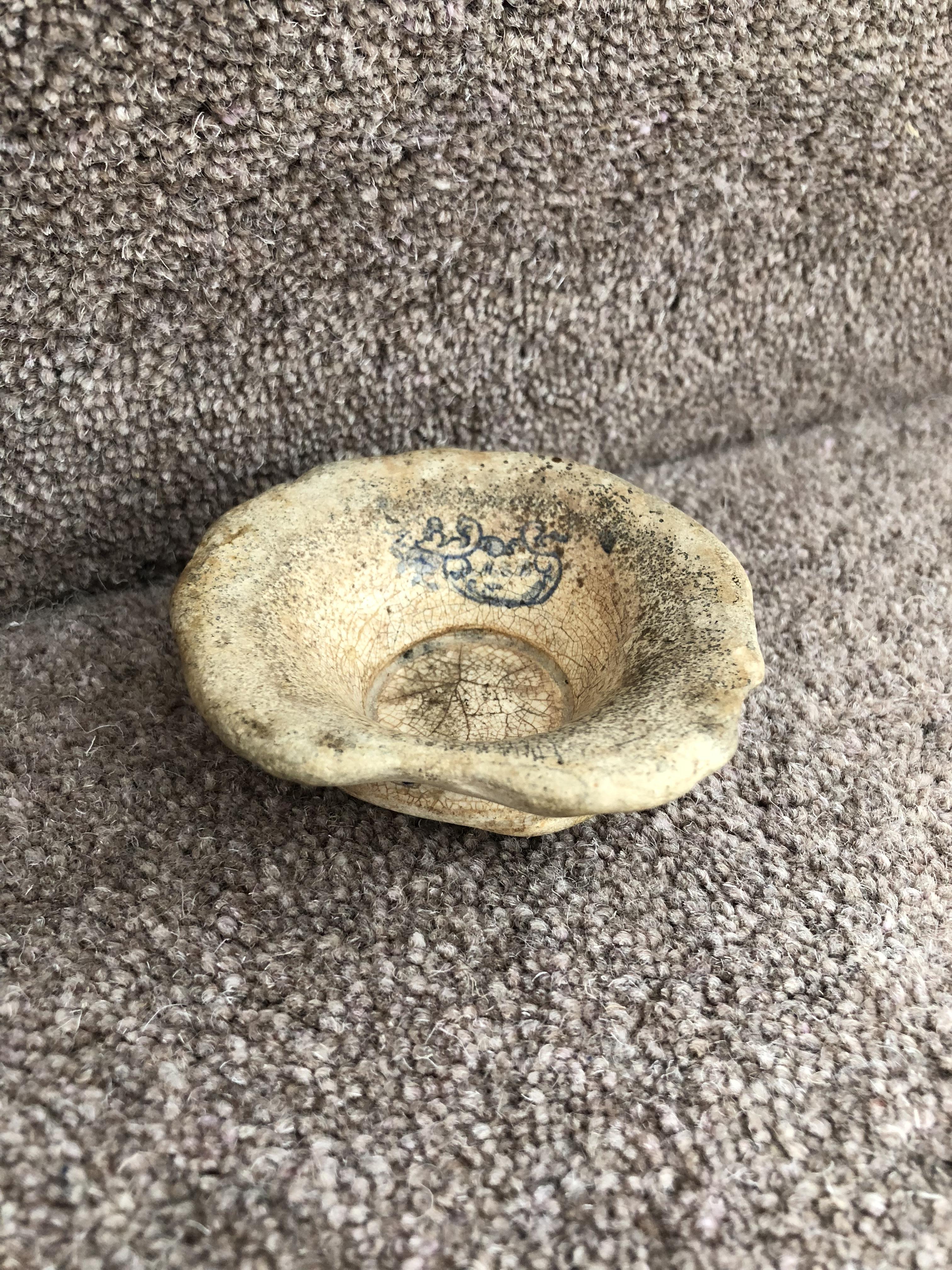 This one is far more mysterious – it has no identifiable text except for something small on the inside of the bowl. My interpretation of this text is that it reads