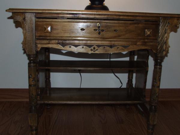 This is a one-of-a-kind handmade table with interesting carvings on the sides.