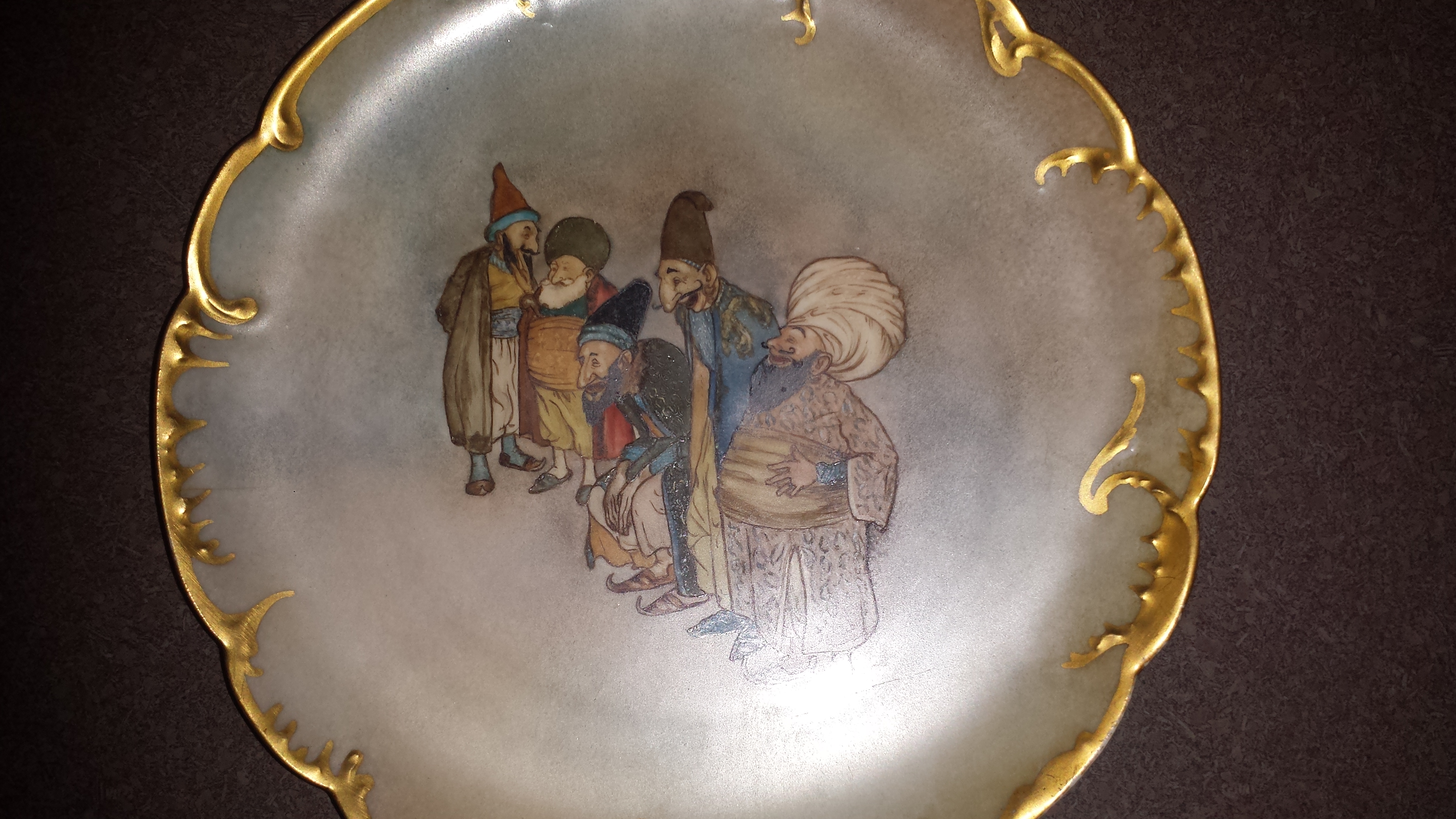 I have these 2 beautiful plates (only 1 picrure will upload the other is differant with a blue background) that have been left to me. We cannot find any information on the person / persons mentioned on the back of the plates. the info on the back is "Haviland France" Ethel Atkinson 1912 after Edumund Dulac. Can someone tell me if they are of any value as we want to insure Thank you