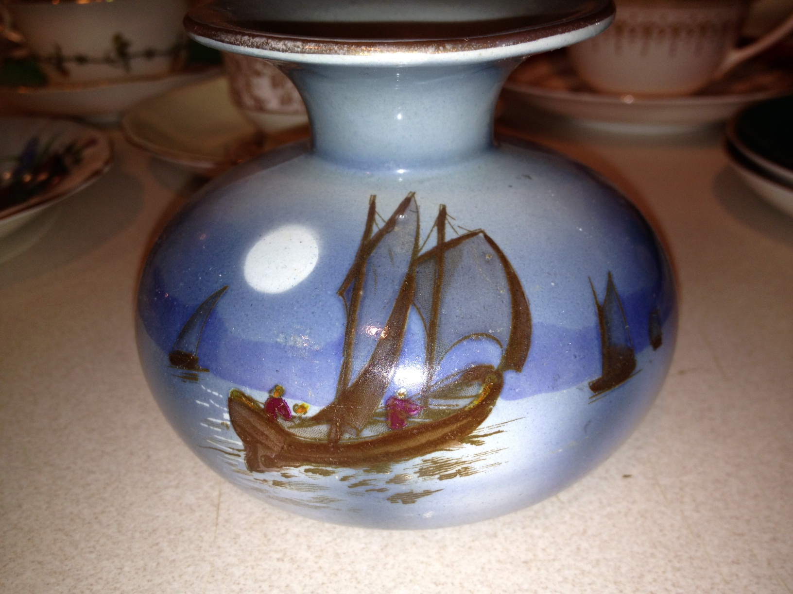 This is a Shelley hand painted pot, the painting goes all around the pot with different fishing scenes.  Please help me to identify this item becase I can only find Shelley china.