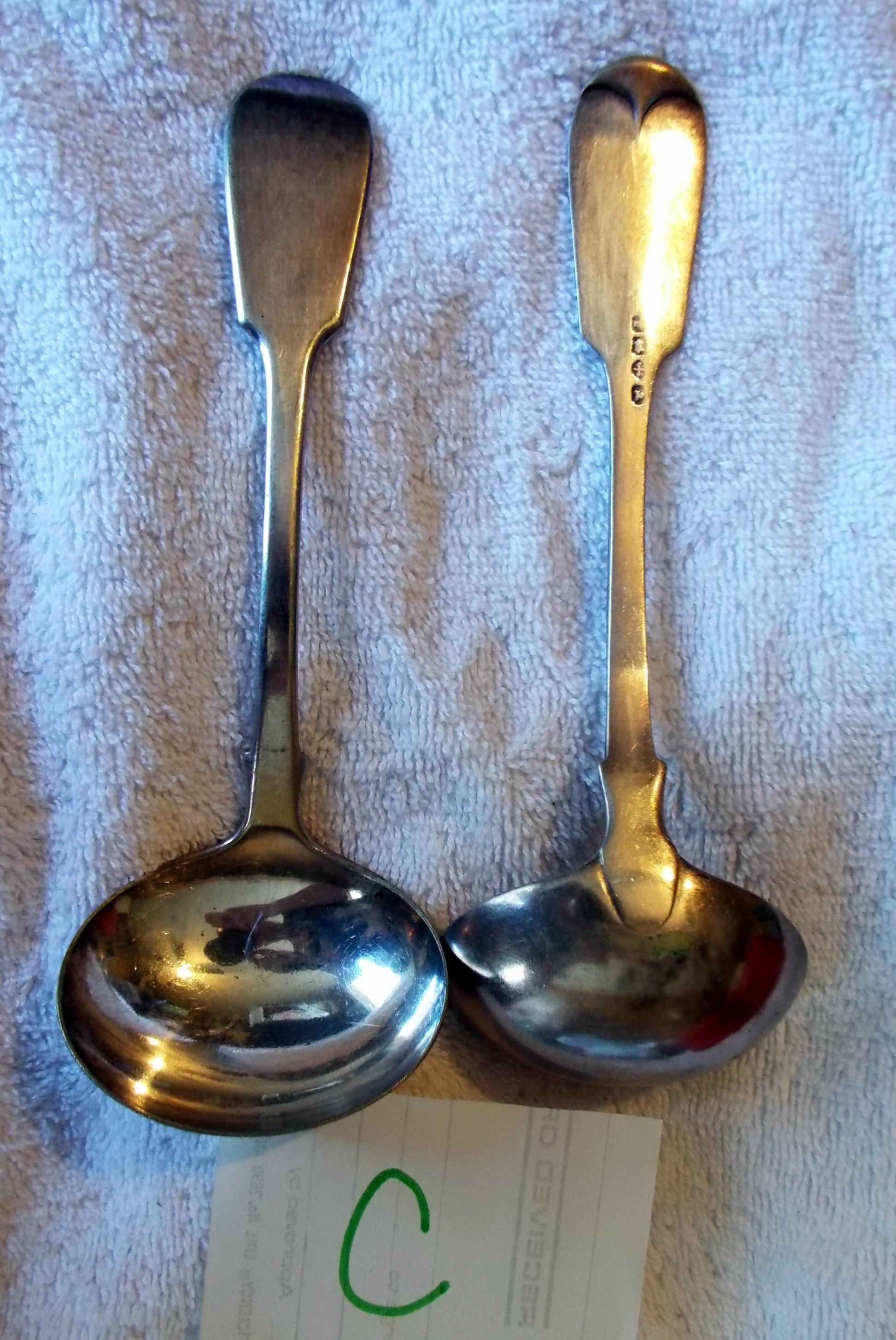 Definately ladles but I cannot read the hallmarks sorry. Is there any other indentifying marks on the front of the ladle or on the handle.