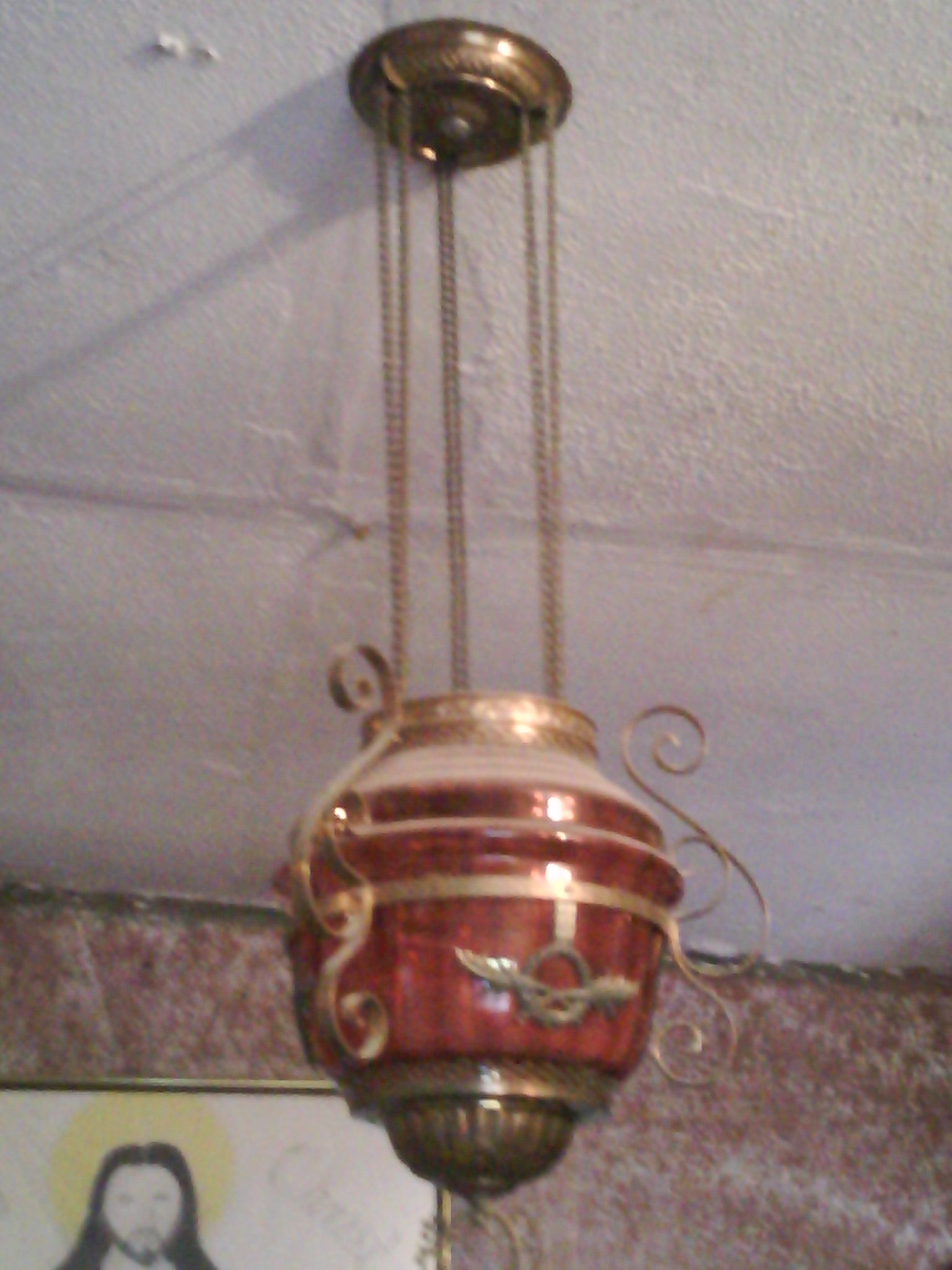 In the distant past, when chandeliers had candles instead of electric lights, many chandeliers could be lowered from their position by either rope or chain to light and snuff out the candles. Perhaps this is a small one that would house a candle inside it. Wish you had other photos, better ones.
