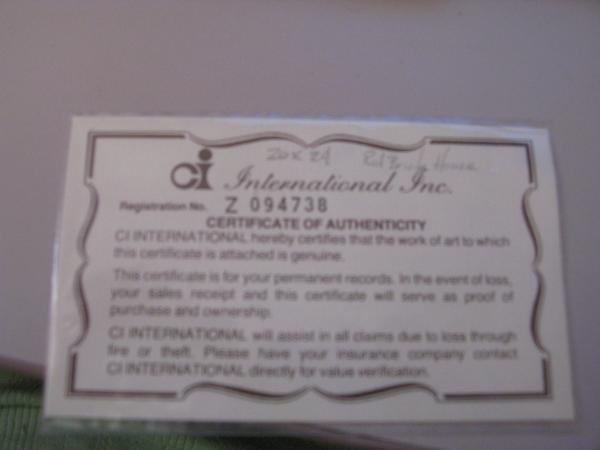 Someone gave us this painting because the were moving. it has an certificate of authenticity with it and says the painting is called the Red Brick House. I cant seem to find that painint anywhere. Can someone help me with the history and possibly a price?
