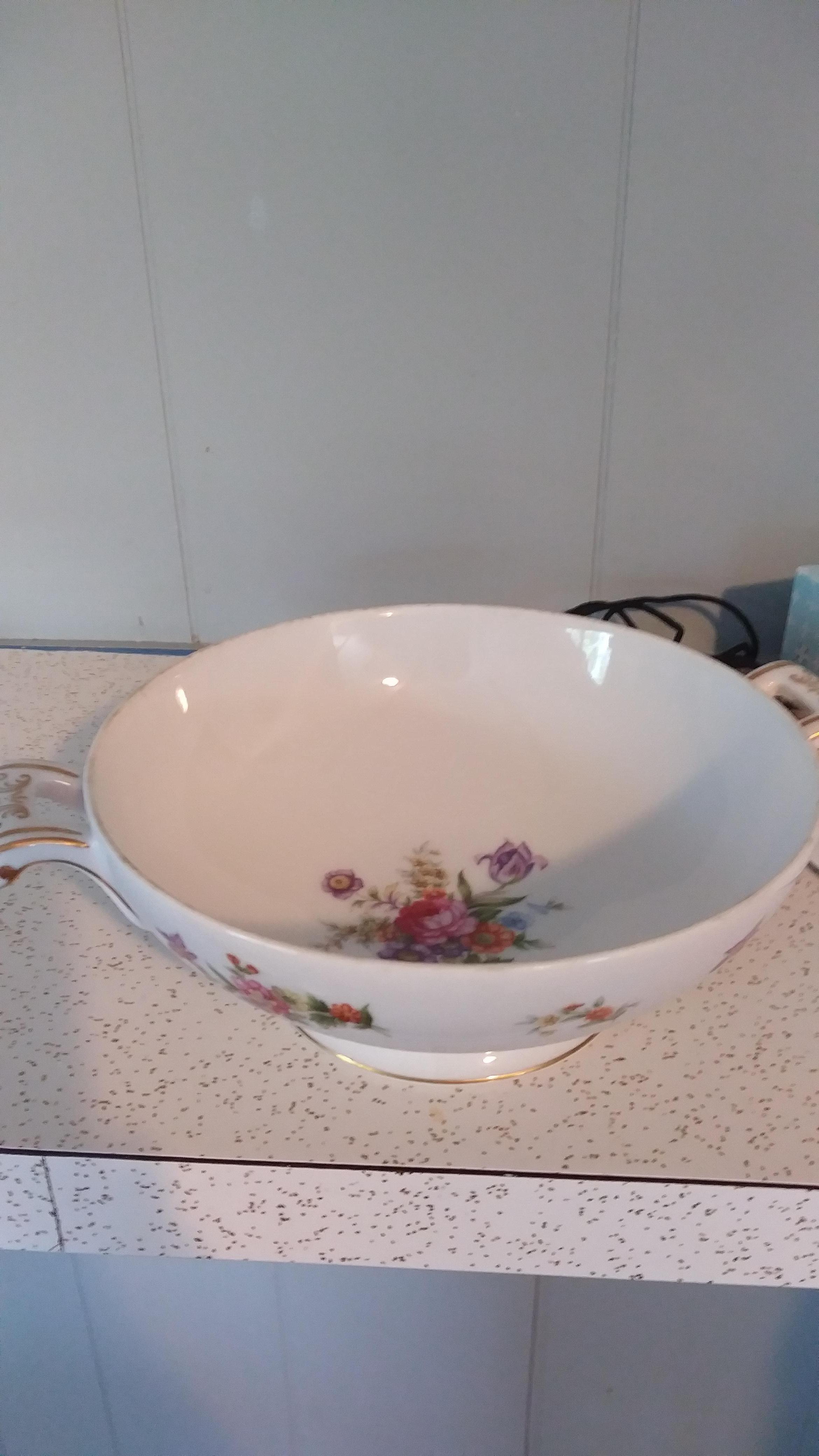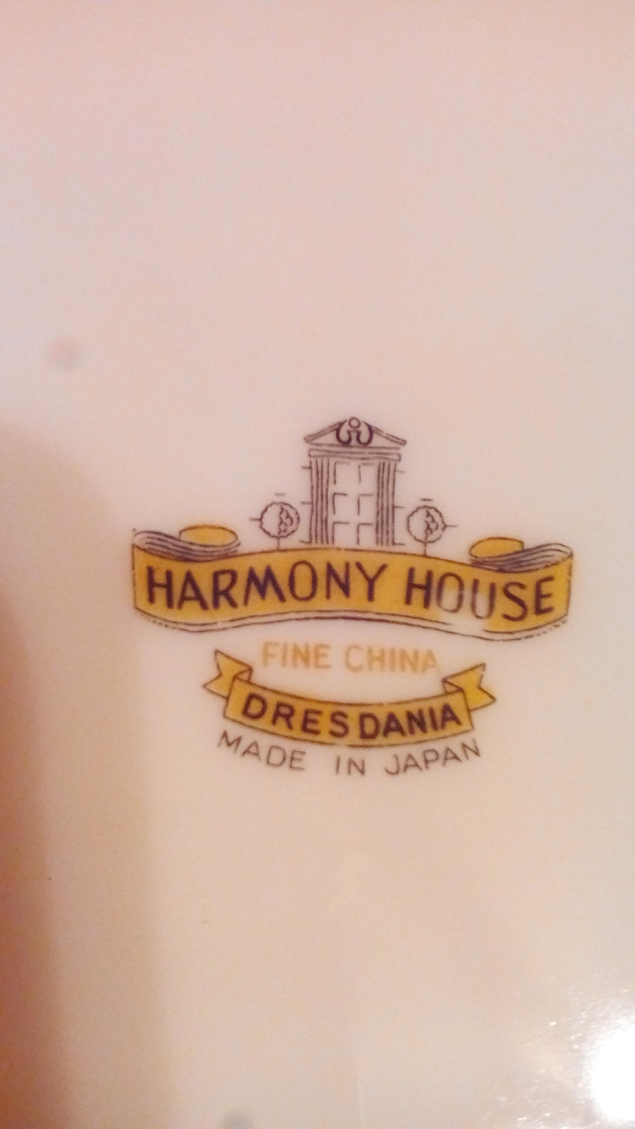 73 piece set of Harmony House Dresdania Fine China with hold trim. Twelve dinner, salad, bread plates and dessert bowls. Eight coffee cups and saucers. One large round bowl and large oval bowl with lids. One large and one medium platter. Creamer, sugar bowl and gravy boat w/attached plate. All are in perfect condition except for a small chip on the rim of the oval bowl. I've seen these pieces being parted out on line but cant find a price for the set. Any ideas?
