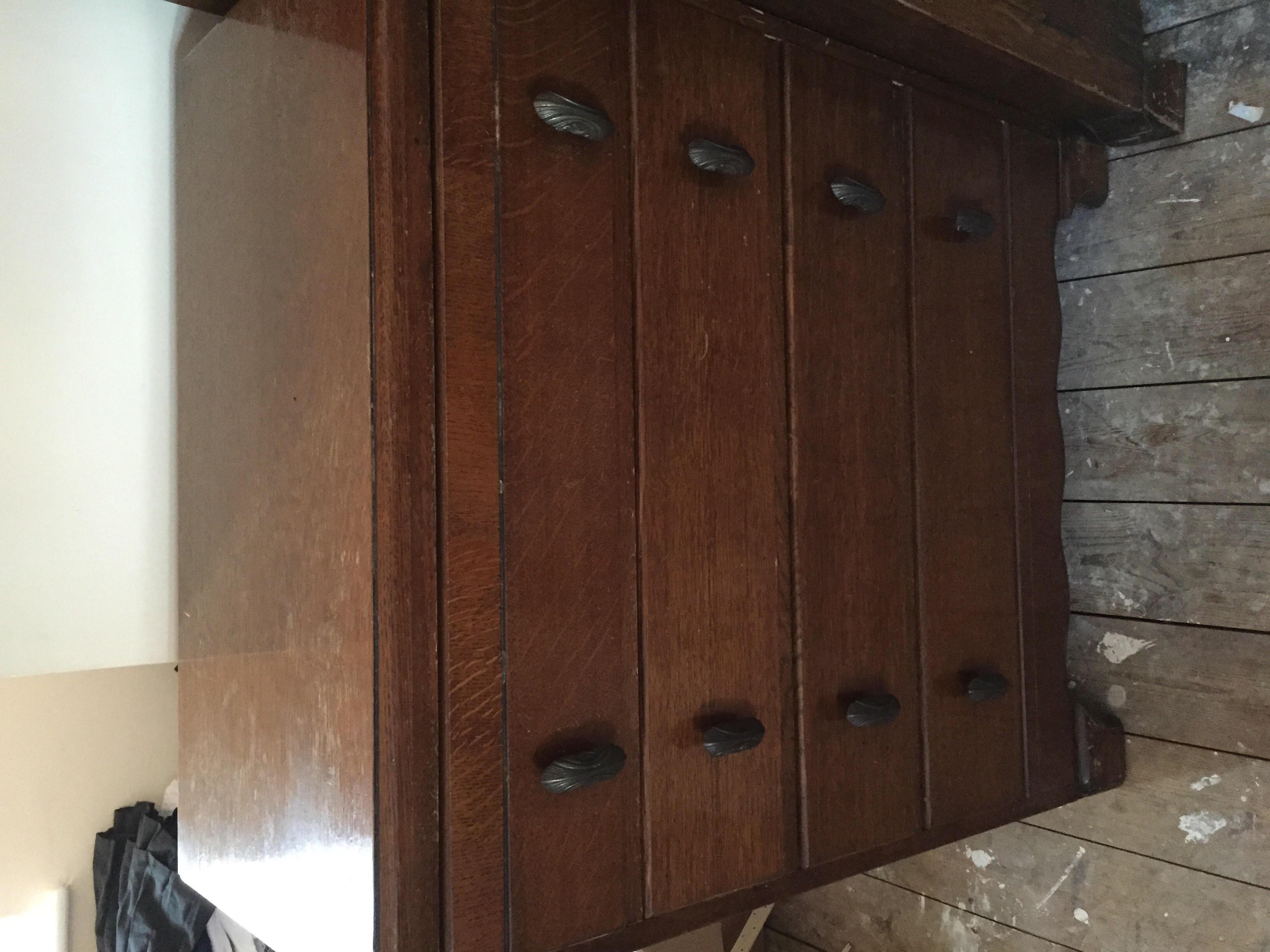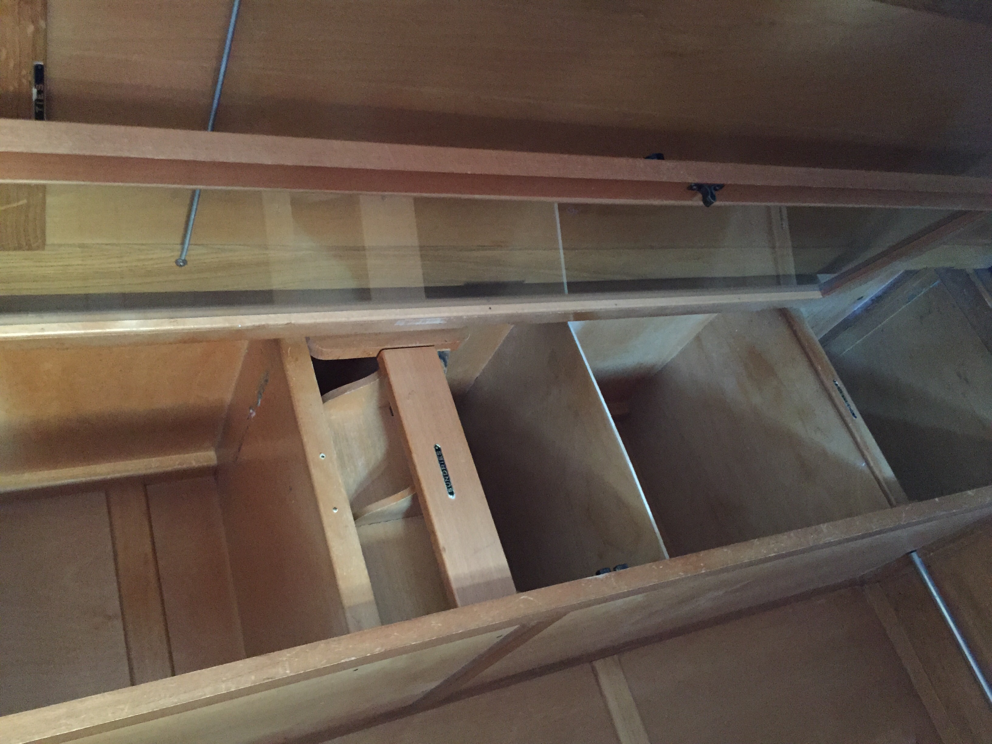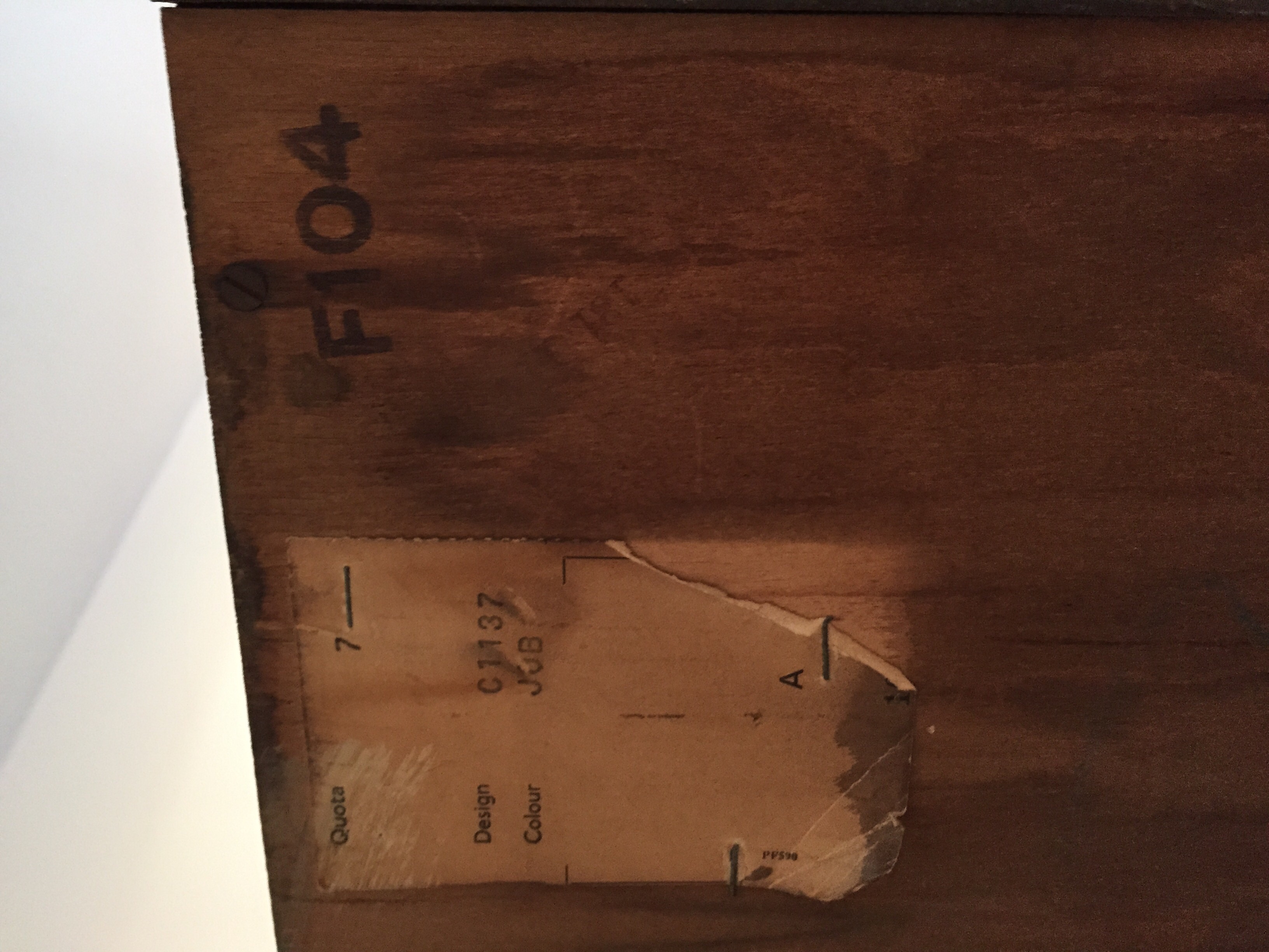 The wardrobe has a key and inside the labels sundries, ties and woollens all intact . Other labels are missing