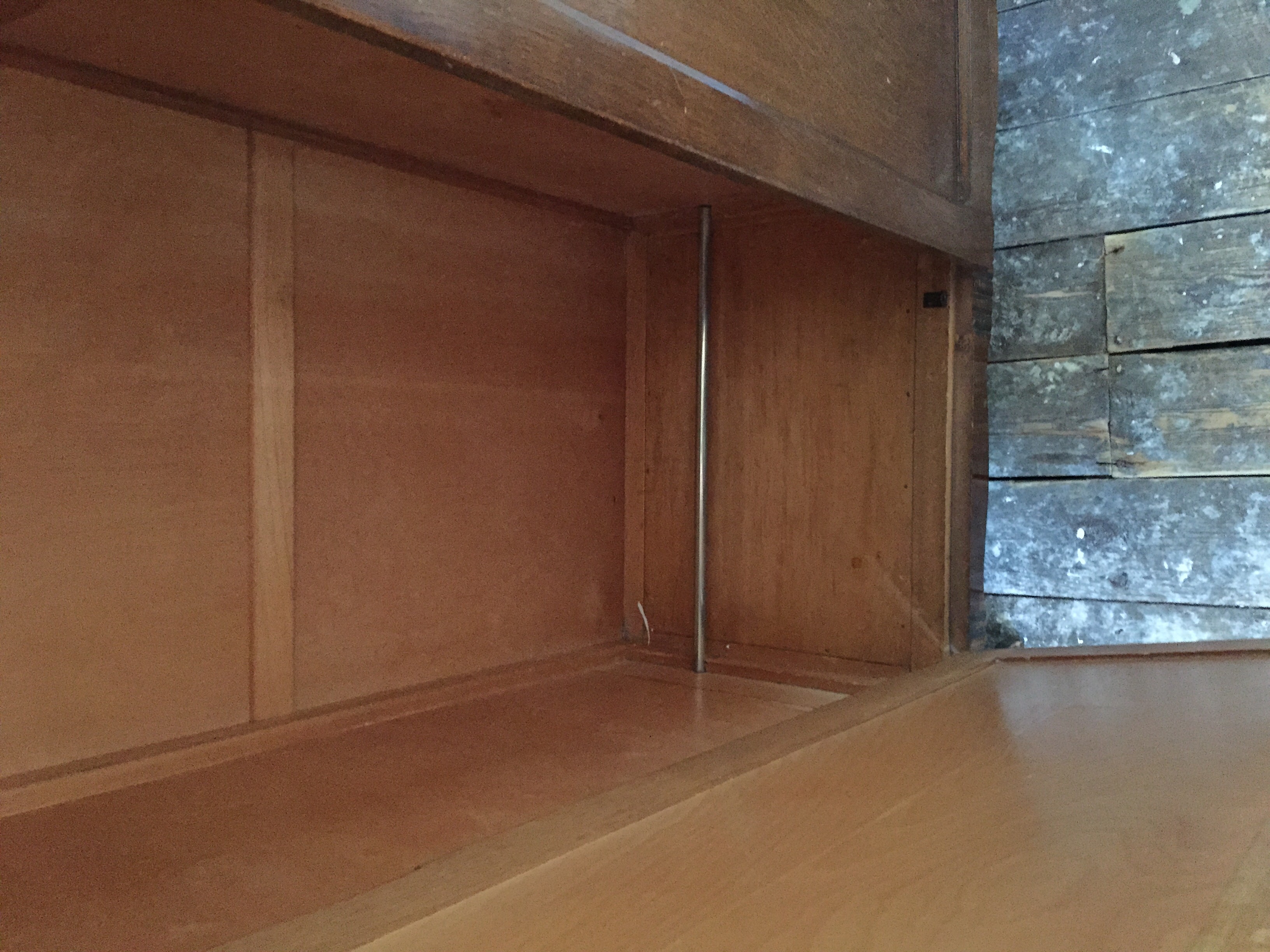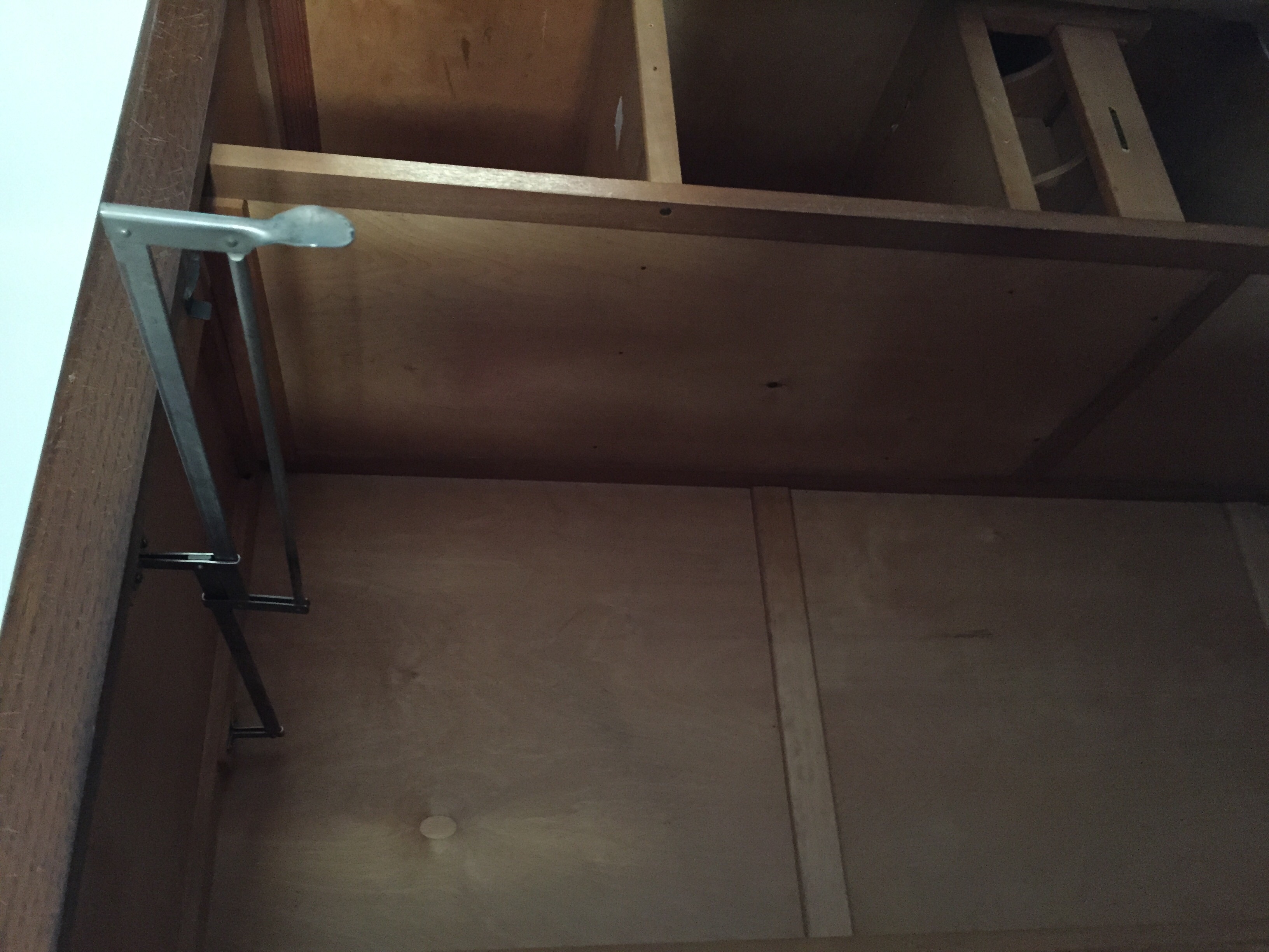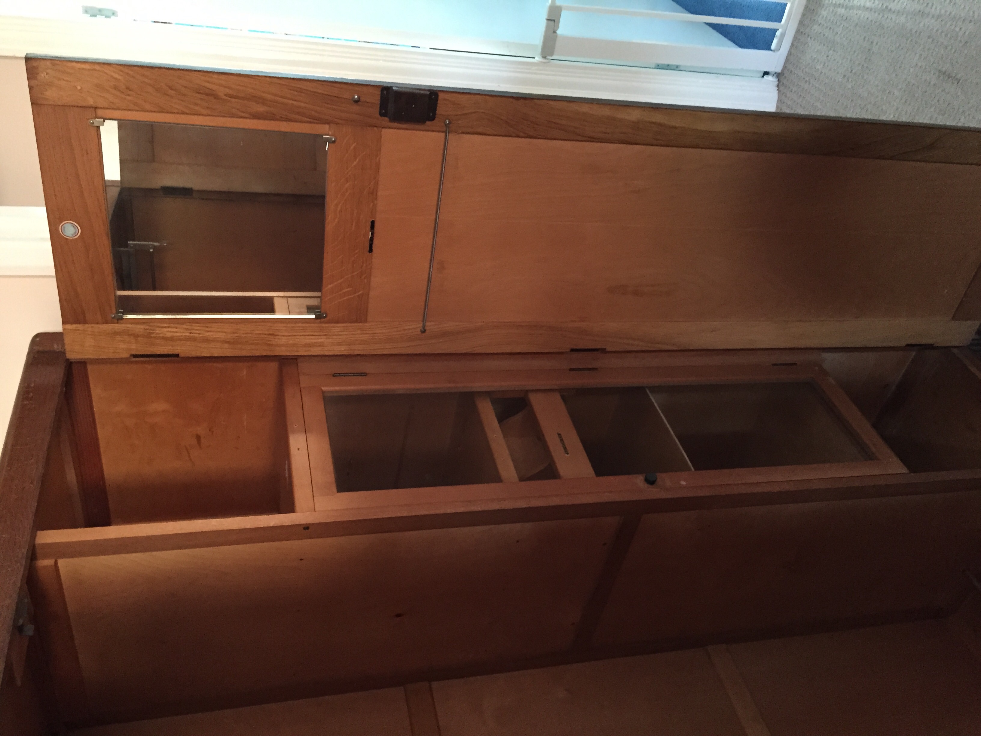 The wardrobe has a key and inside the labels sundries, ties and woollens all intact . Other labels are missing
