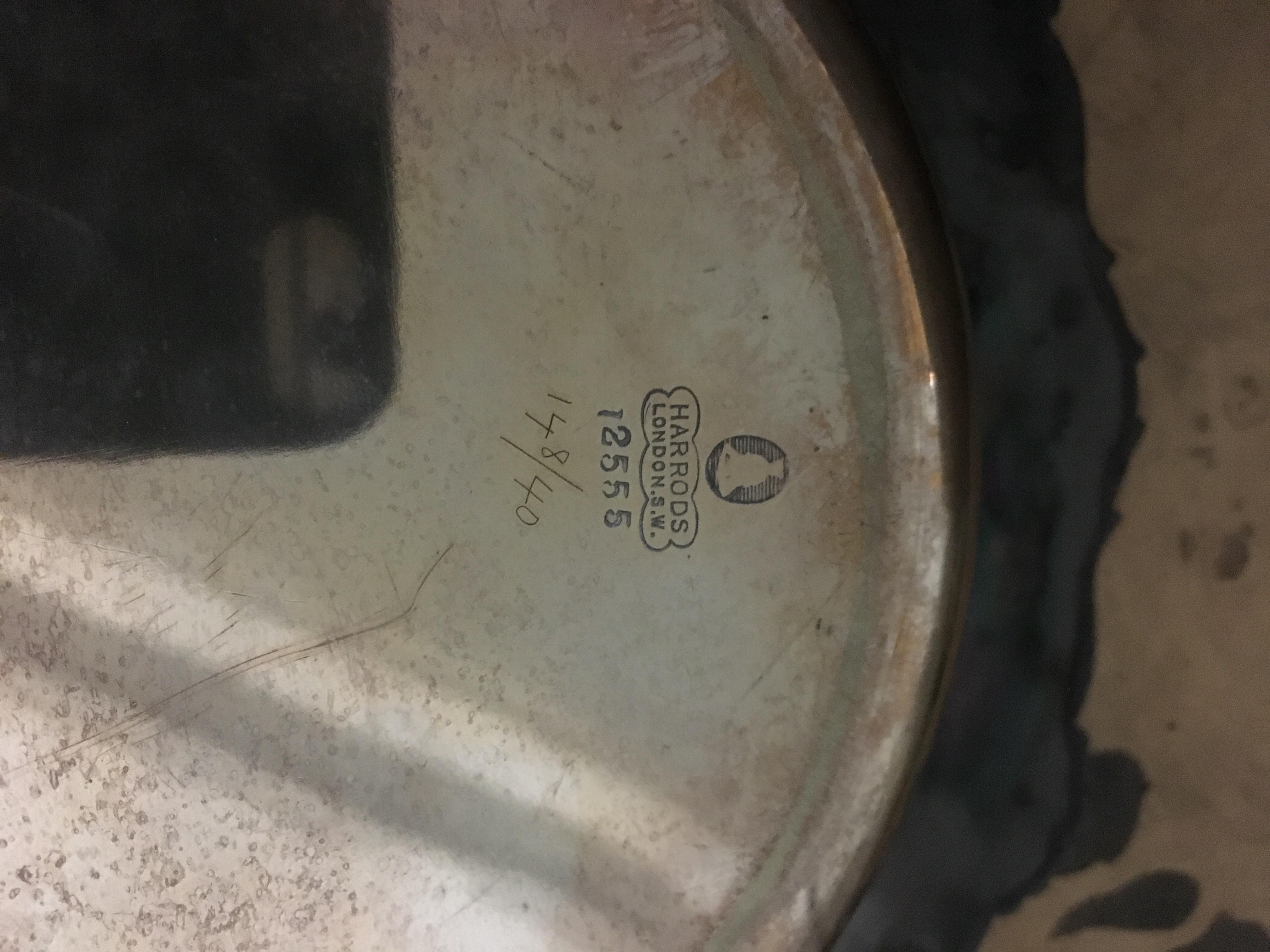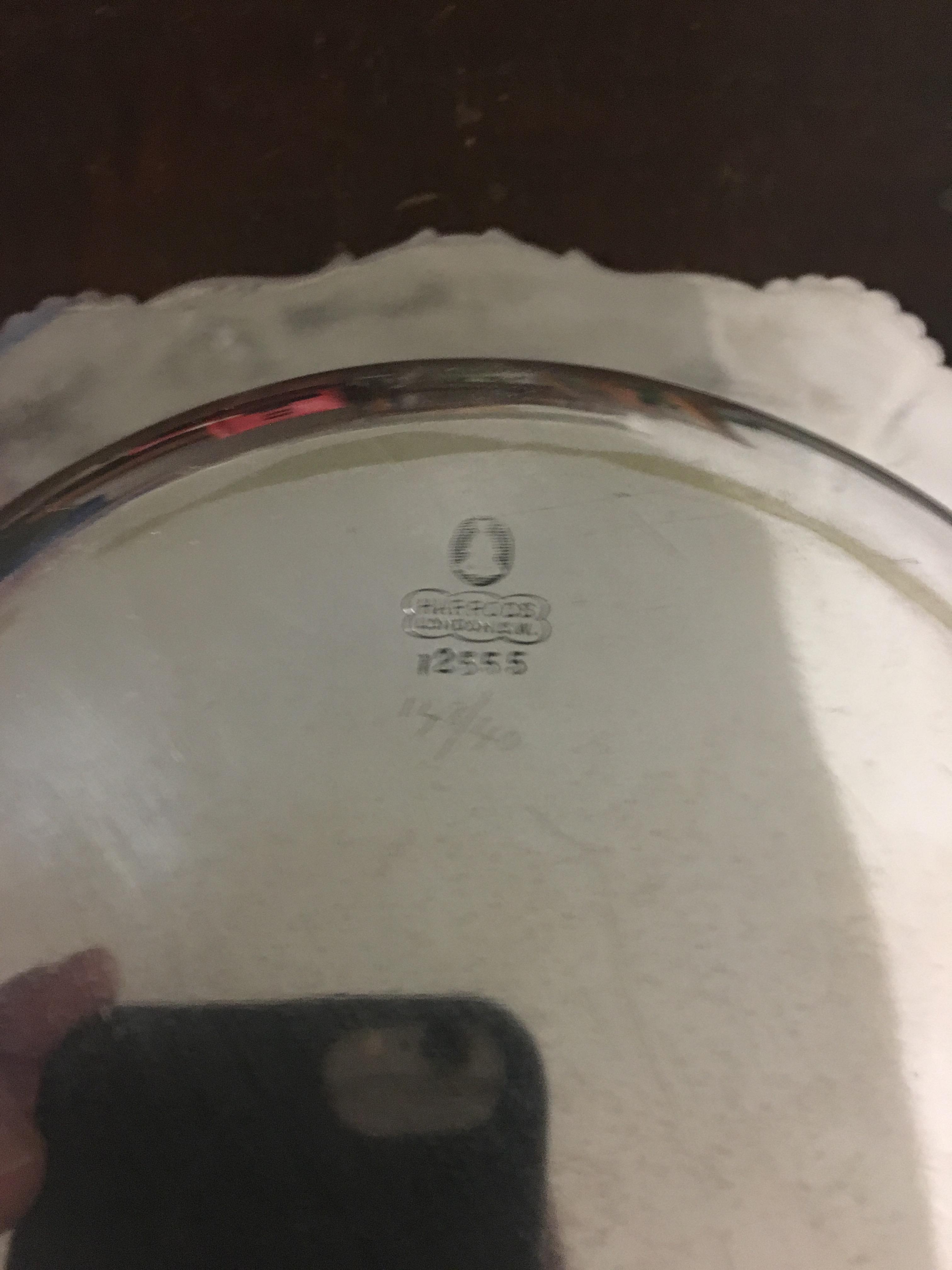 I have a silver tray that is stamped Harrods London S.W. It has the bell mark from W & G Sissons silversmiths. It is 9 inches outside diameter and 5 3/4 inches inside diameter. It is 1 3/4 inches tall. I was wanting an approximate year and value on this item.
