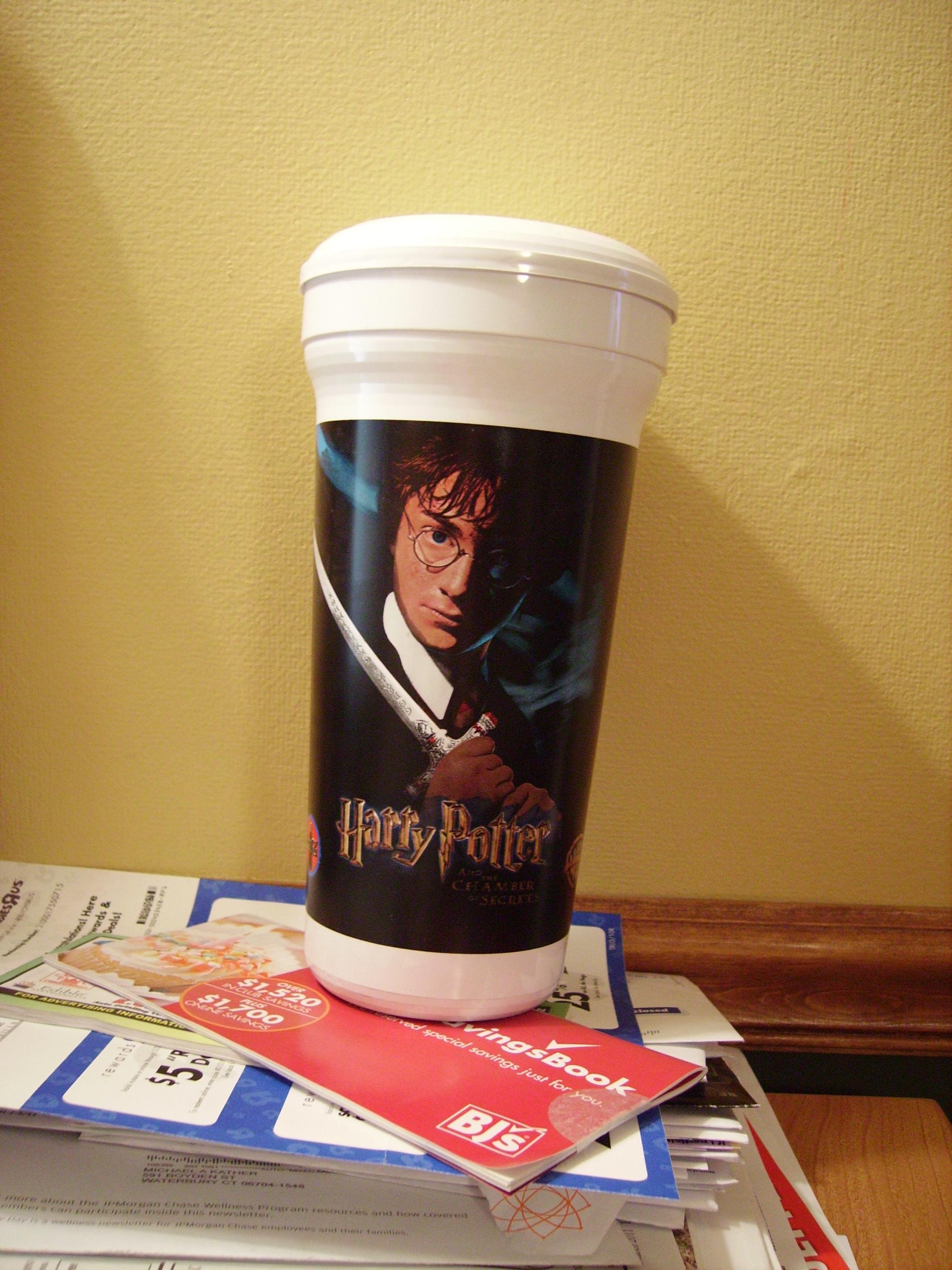 We bought the extra large soda when we went to the movie Harry potter and the Chamber of Secrets. After the movie we took the cup home, washed it and put it away. Now we are curious as to what it might be worth.