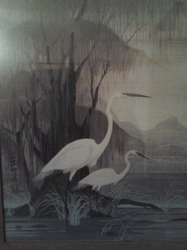 Heronim Oriental Print "Herons Along A Mountainous Lake"