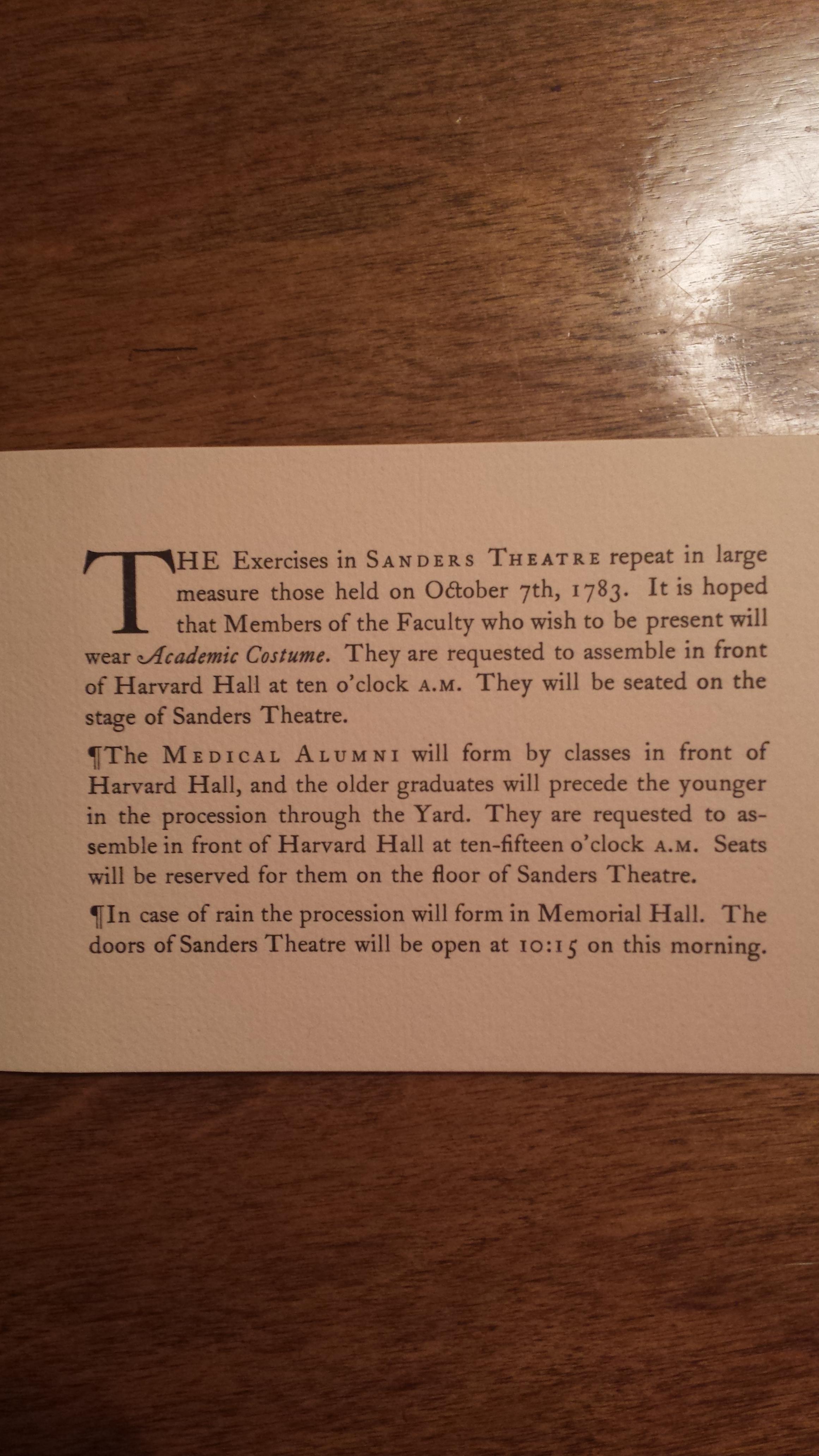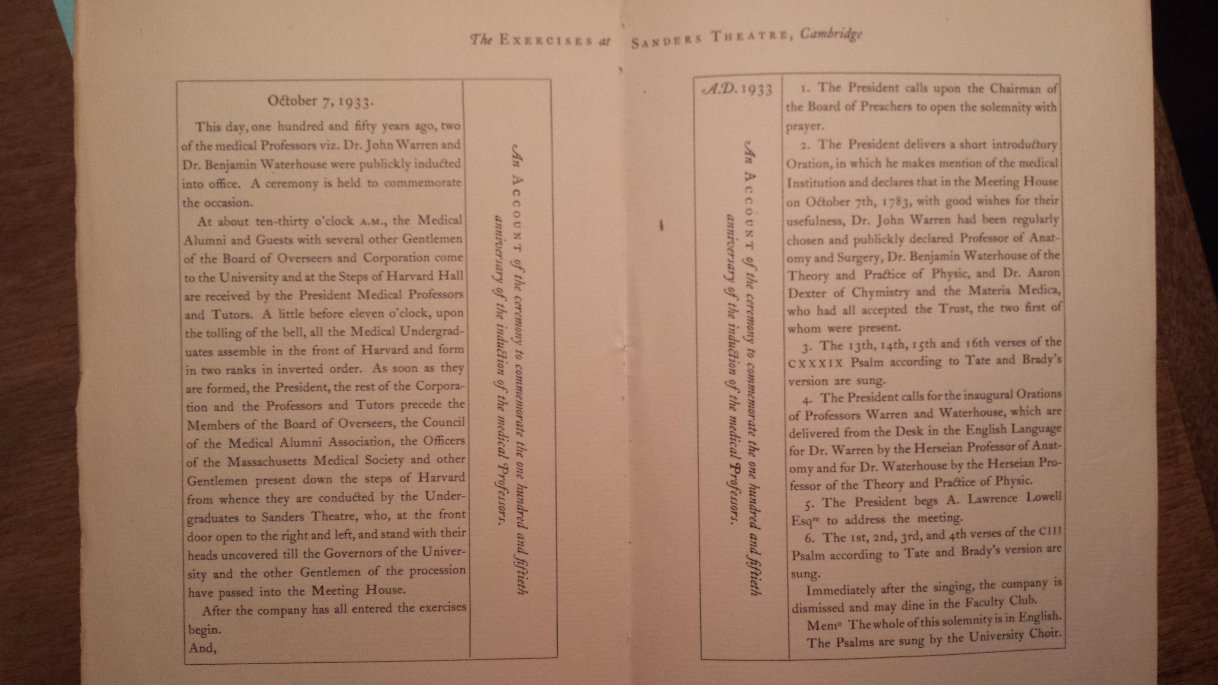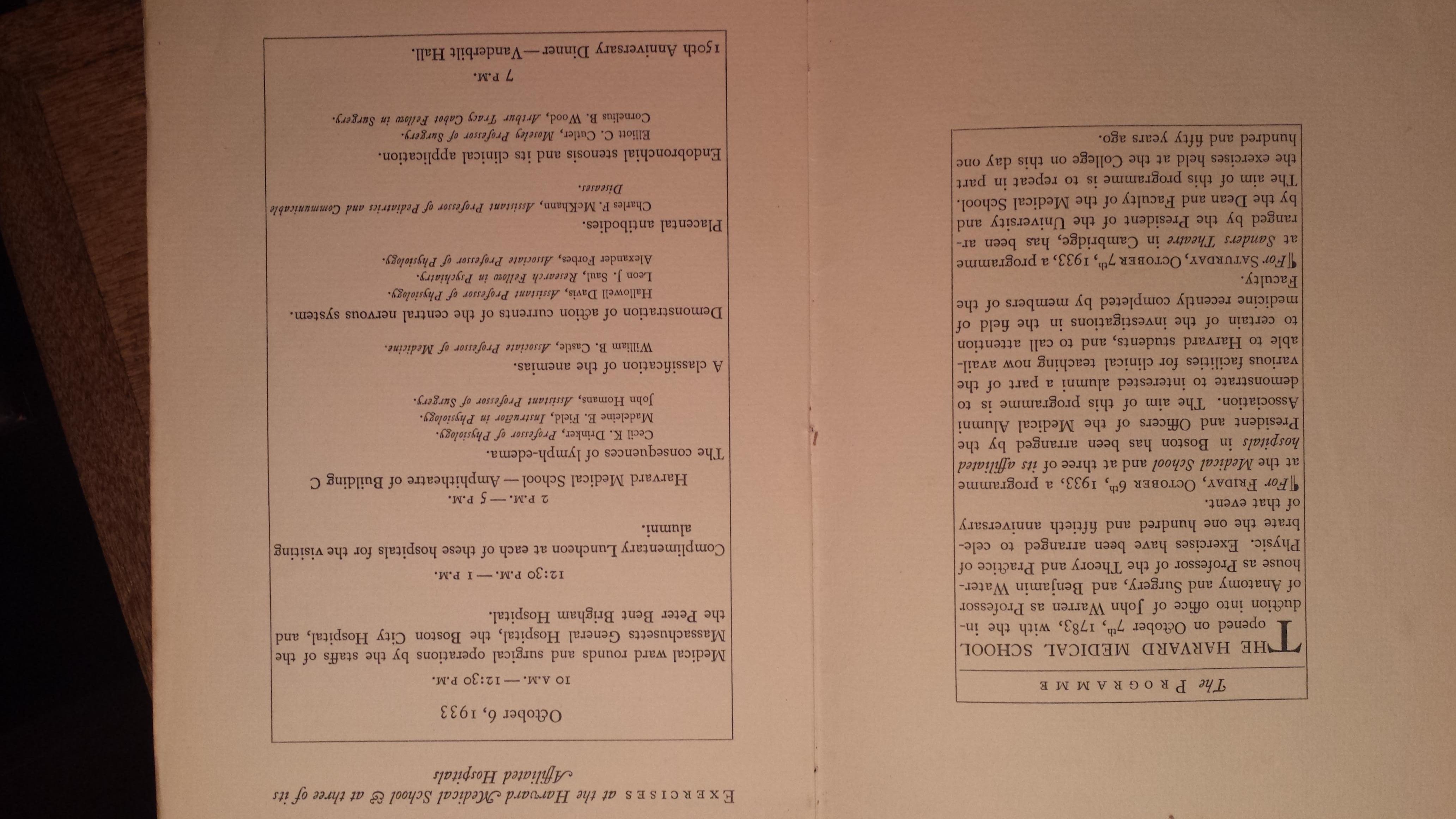 Harvard Medical School Programme of The Celebration of the One Hundred and Fiftieth Anniversary of the Opening Of The School. October 6th & 7th, 1933. Includes the reply card