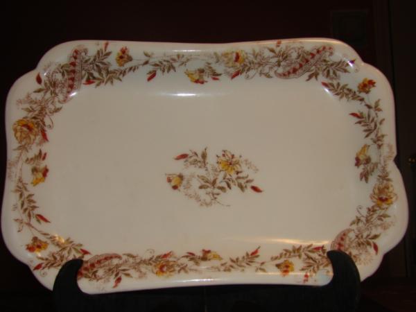 Description Purchased this at a 2nd hand store. Did a bit of research. According to various sources the backmarks mark H was used from 1888-1896 & mark c was used 1876-1878 & from 1889-1931. Would I be correct in assuming the dish is from some time between 1889- 1896? Near the backmarks there is a very light letter B impressed. Am intrigued to know anything else. The dish has a chip on the right side, which you can see in the photo. I have tried to ID the pattern but haven't been able to.