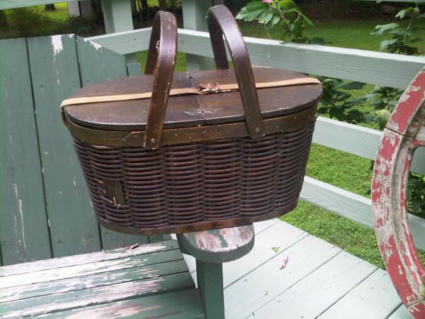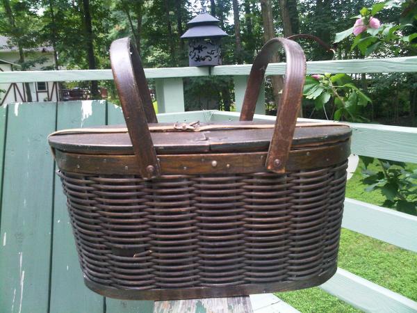 Wicker with tin lining and wooden lid and handles