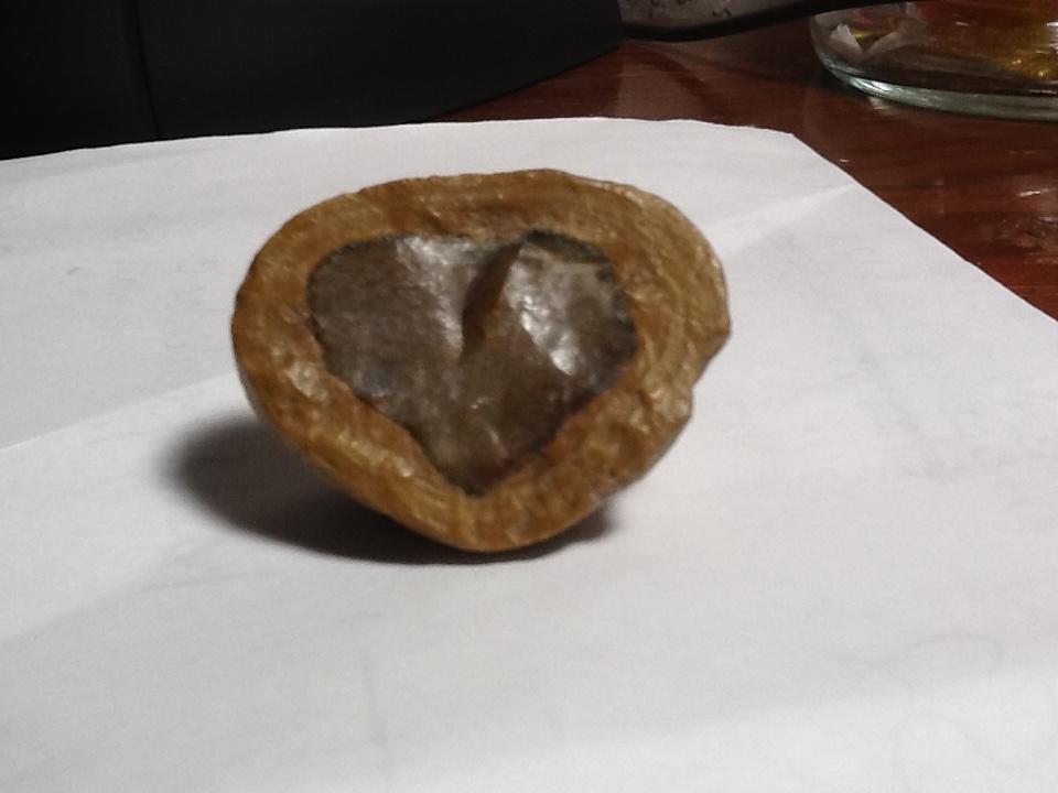 This item was found in dry creek bed amongst thousands of other rocks. It is naturally cut in half.