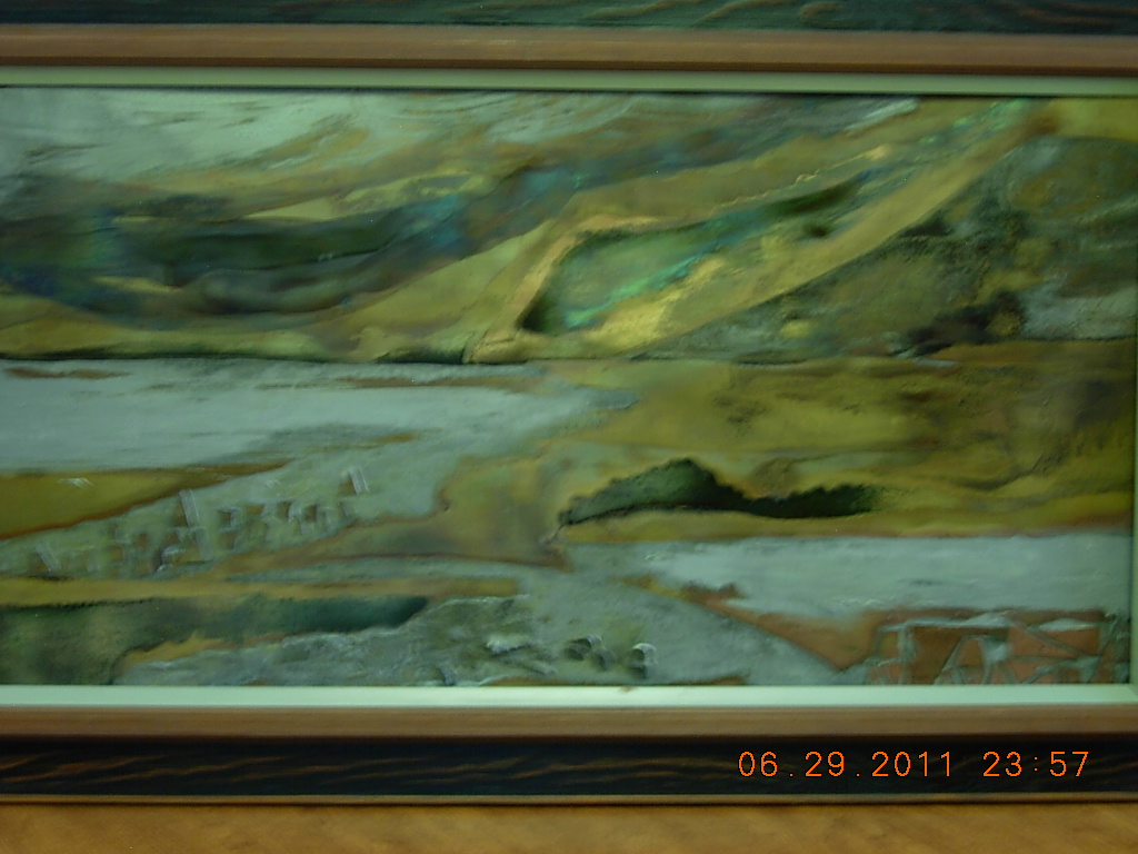 oo and e. It is quite beautiful and has always been my favorite piece. It is very clear it is a lake scene. Looks just like some of the watercolors.