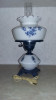 lamp was found at a garage sale and works. It has cast claw like feet with white glass globe and white glass base both have roses in the glass themselves and appear to be painted roses on them as well.Also has turn type switch for nightlight/light/or both at one time.