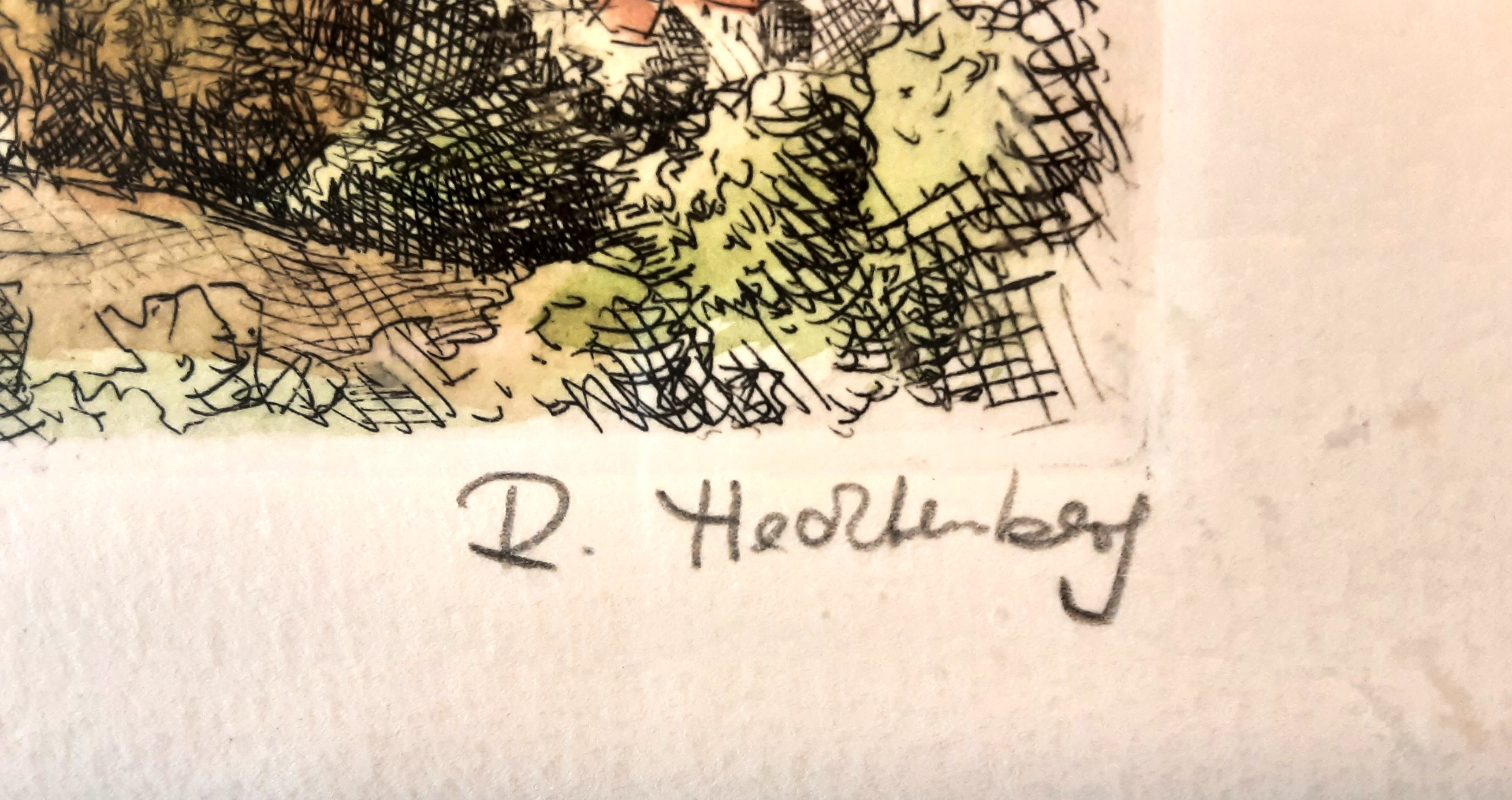 The marking “R. Heidelberg” appears to act as a title extension, not a true signature. This was a common practice for small souvenir etchings, often produced in multiples by print studios in Germany.