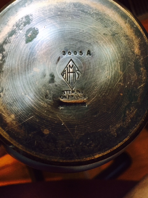 This vase is sterling on bronze with Heintz trademark on bottom of vase along with the words "sterling on bronze and pat. Aug 27.12. Also the number 3605A.