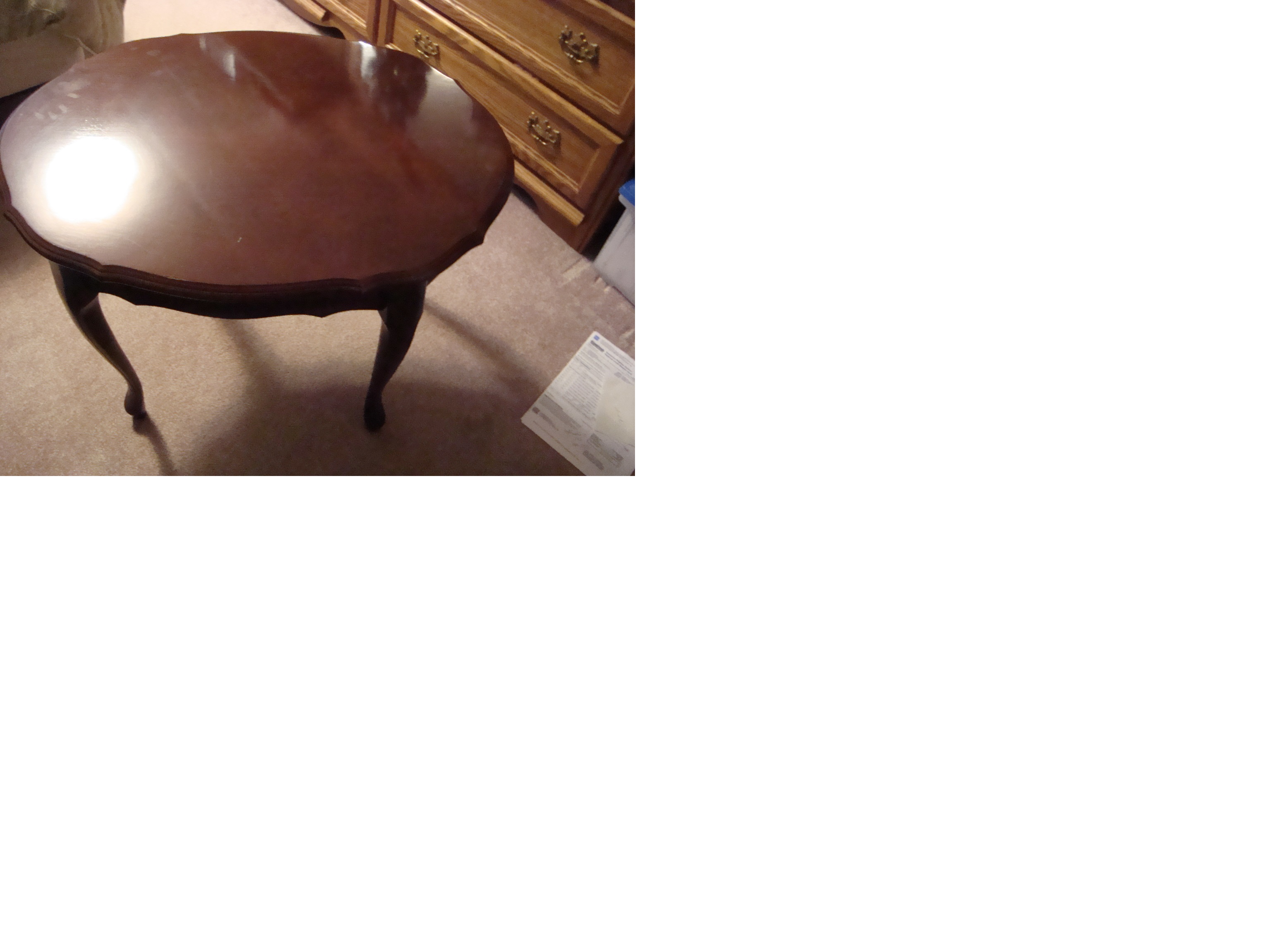 These are solid wood and heavy. The coffe table is 50 inches long by 21 inches wide. The side tables are 28 inches long by 20 inches wide. They came from Heirloom of Canada in Chesley, Ontario Canada. I have tried to find with no sucess to gain value. I found one coffee table, identical on an auction site, but auction closed, and no more information. Any information would be appreciated. Thank you.