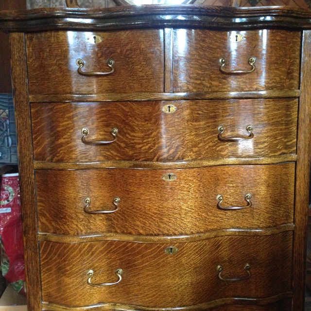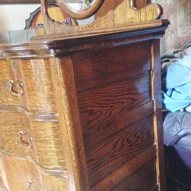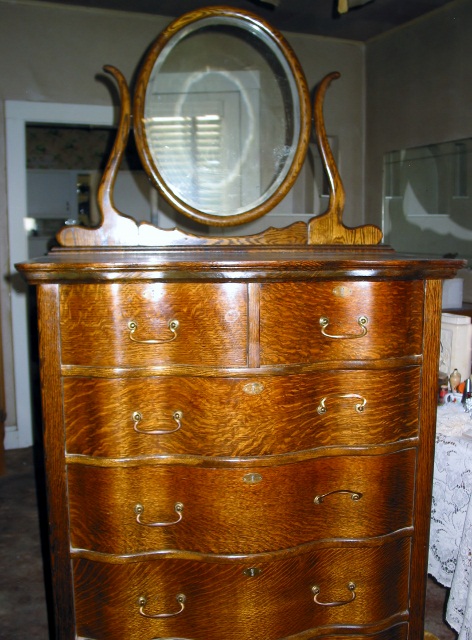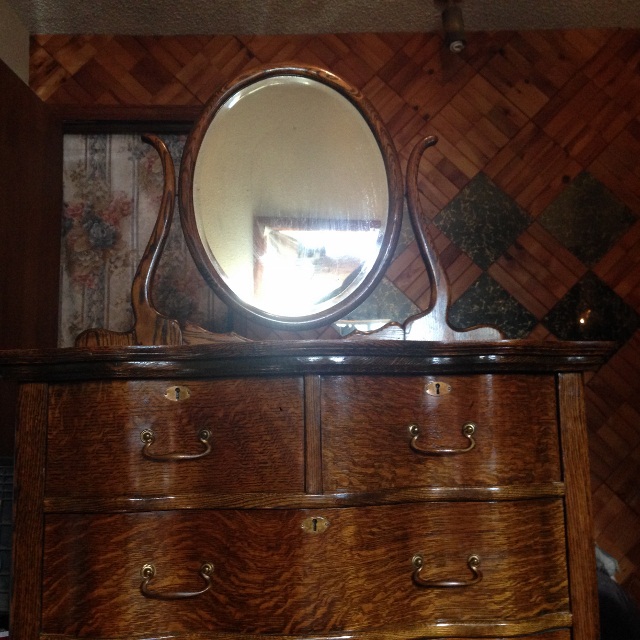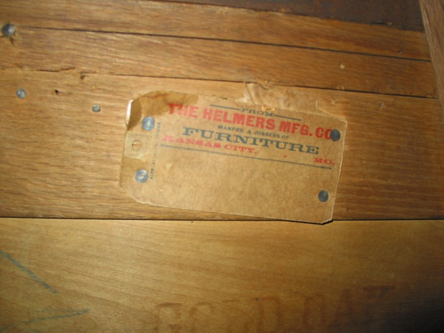 This Helmers gold oak hi-boy has been in the family for many years. It has the numbers 561/2296-41 on the back along with the Helmers label. It was manufactured in Kansas City, MO. There are six drawers and a "floating" mirror on the top. It also has wheels. Any help with the value of this item would be appreciated.