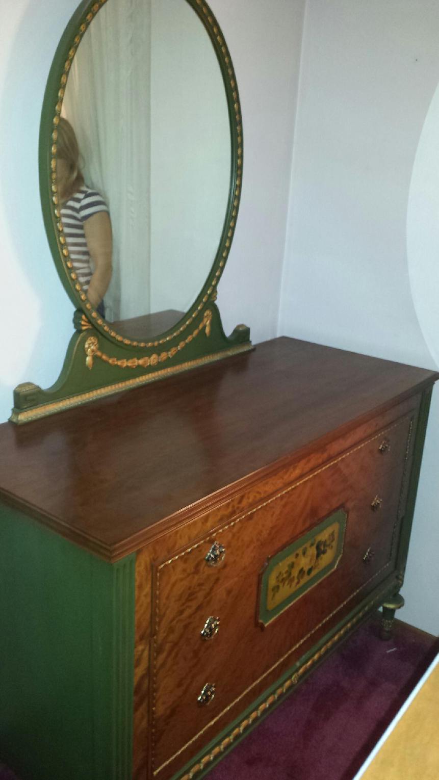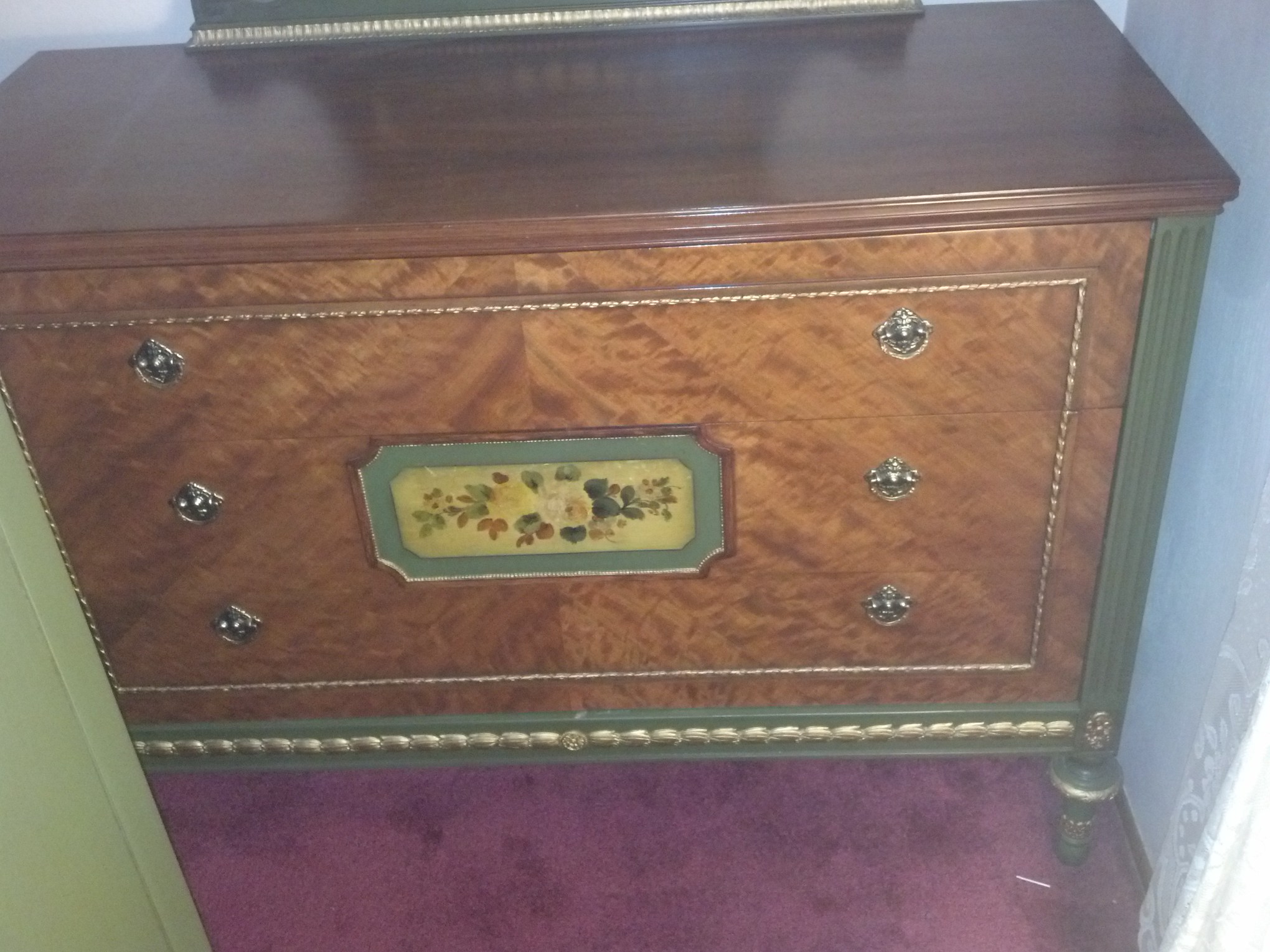This bedroom set belonged to a family member.  We would appreciate any help identifiying what exactly it is and if it is of any value.  We have the chest of drawers, dresser, and twin head/footboard.  Any help is appreciated.