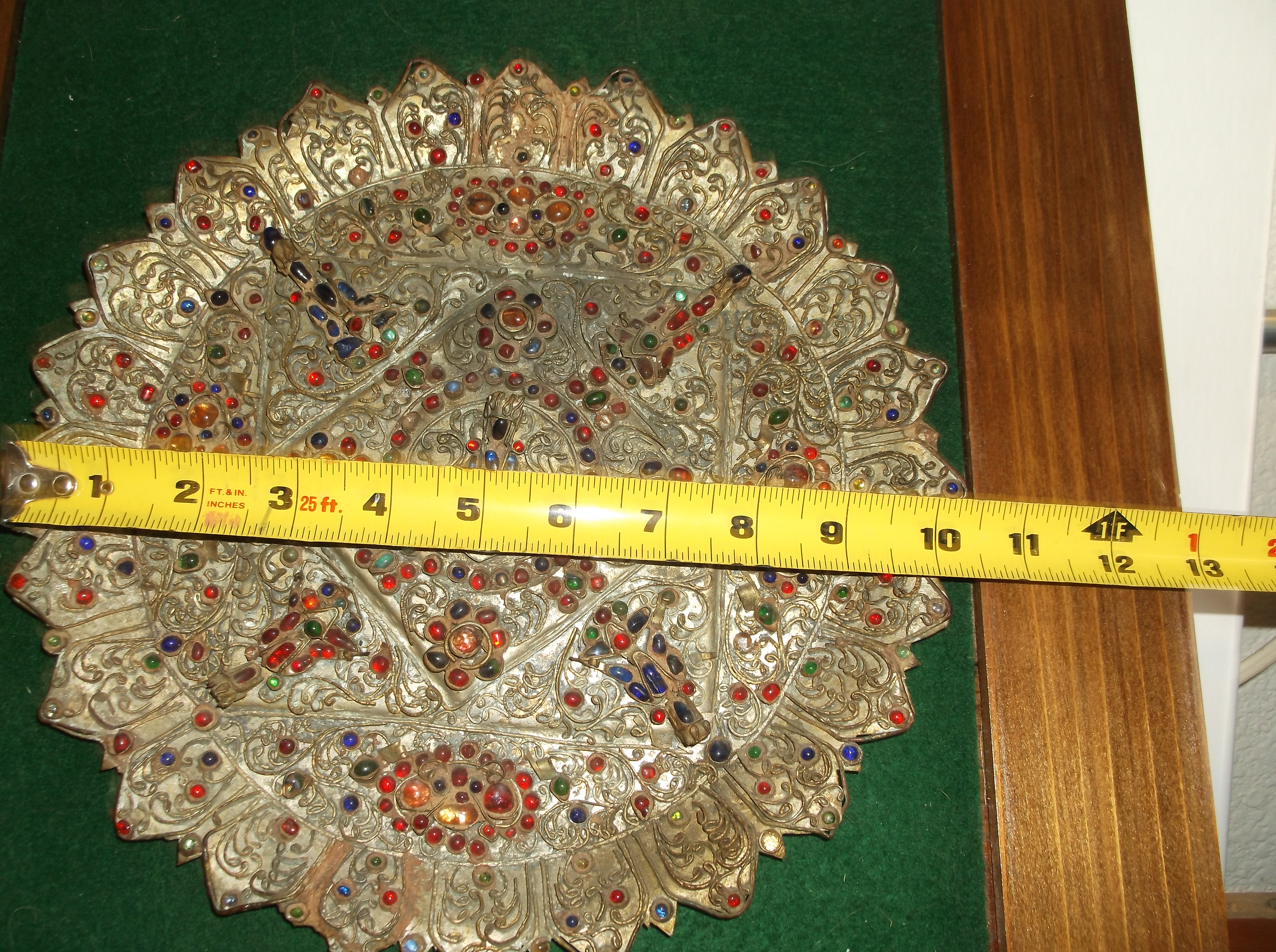 It looks like something made in the Phillipines, they do a lot of hand hammered metal work like this there, as to value, I've no idea.