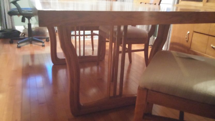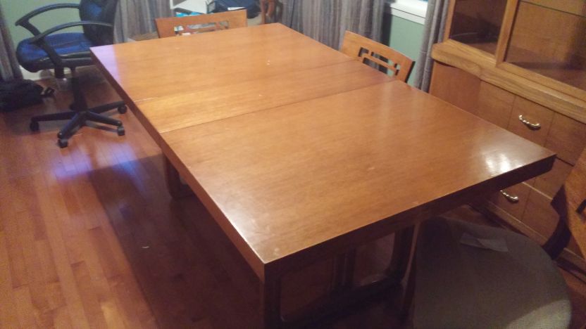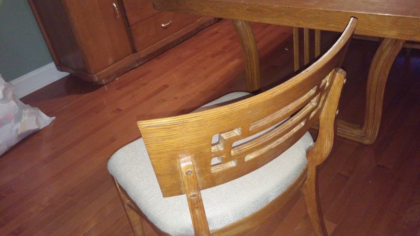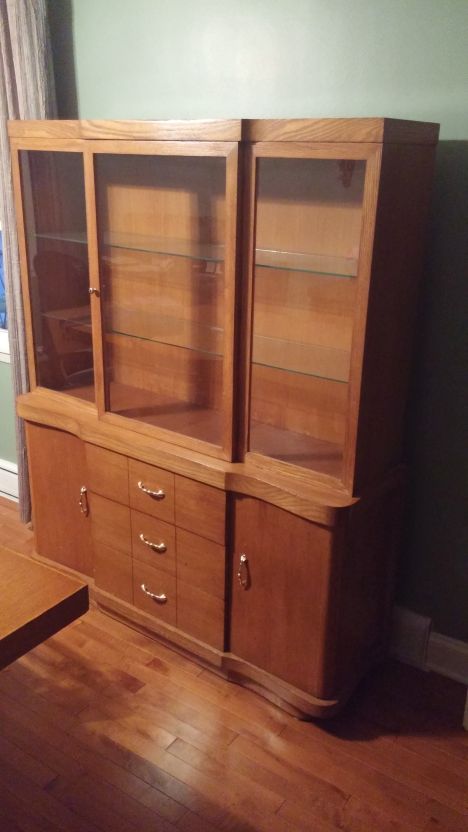 Dining room set from 50's or 60's. Table, leaf, 6 chairs, buffet, adn china cabinet. Set was stained darker than original light oak. fair amout of scratches and nicks. How do i describe it when trying to sell? What would be a fair price to accept for it in the Buffalo NY area?