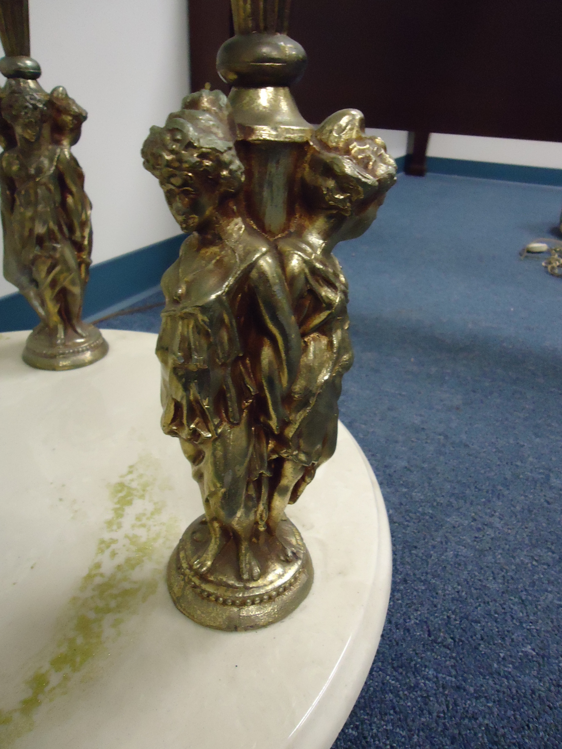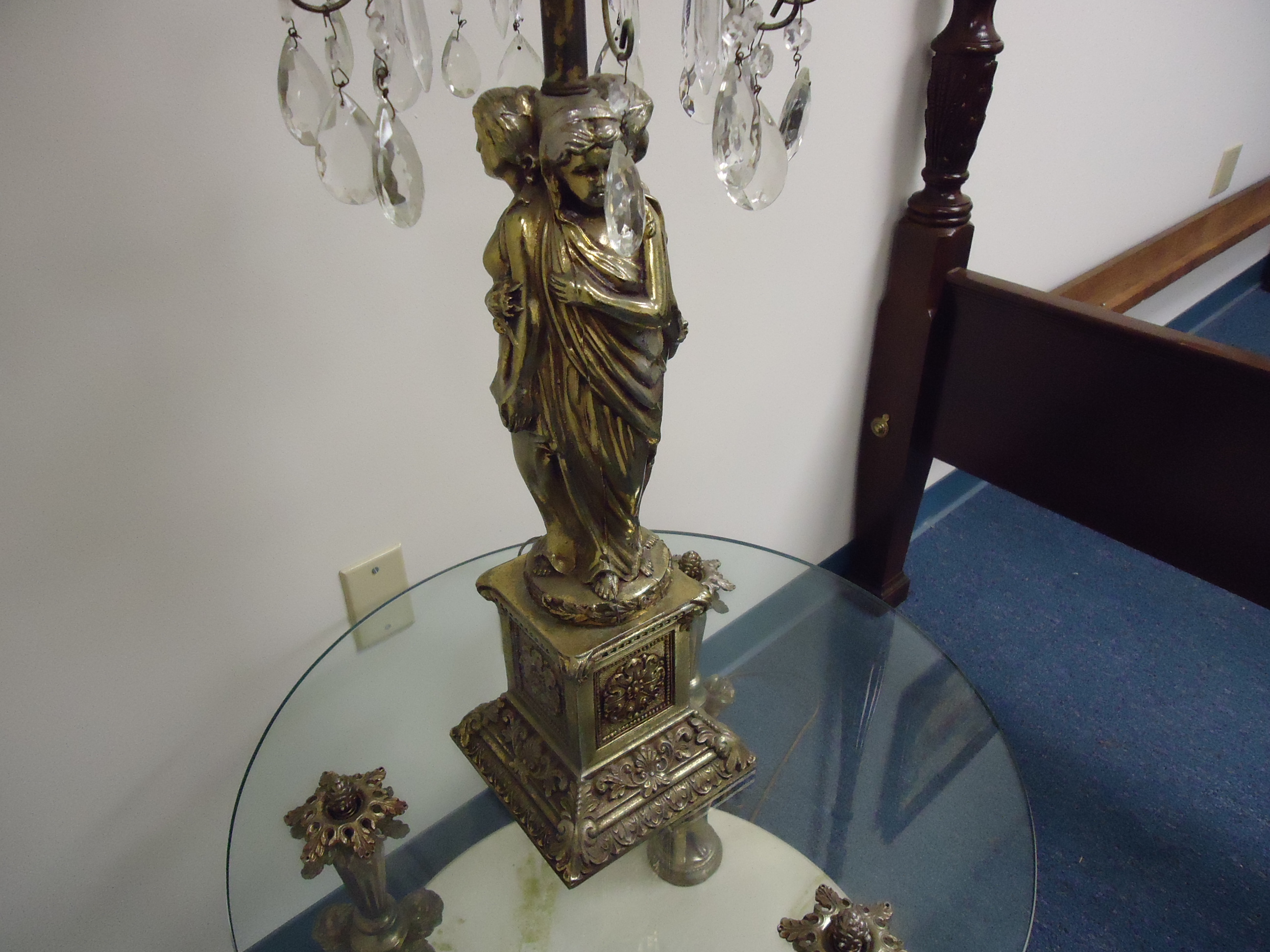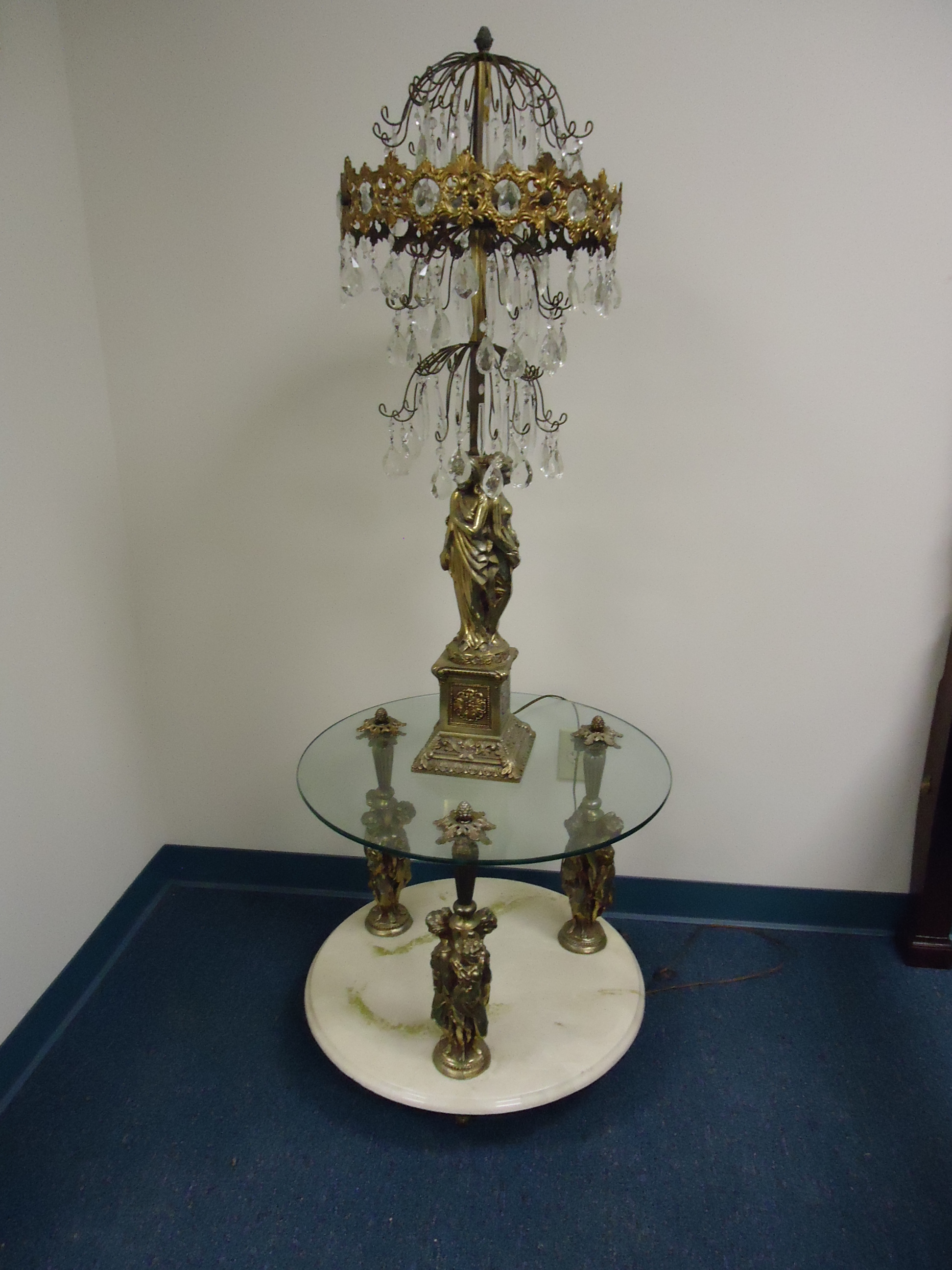 I have tried to find out where this came from. It's a table and matching chandelier lamp/girandole/ elec. candelabra...(not sure on exactly WHAT it is, so pretty hard to ID it, lol) The pieces table and lamp seperate, but are obviously made by the same maker. Not sure if it IS antique, or just MADE to LOOK antique, etc... Any info would be GREAT! I can't sell it until I know where it has come from.... :)