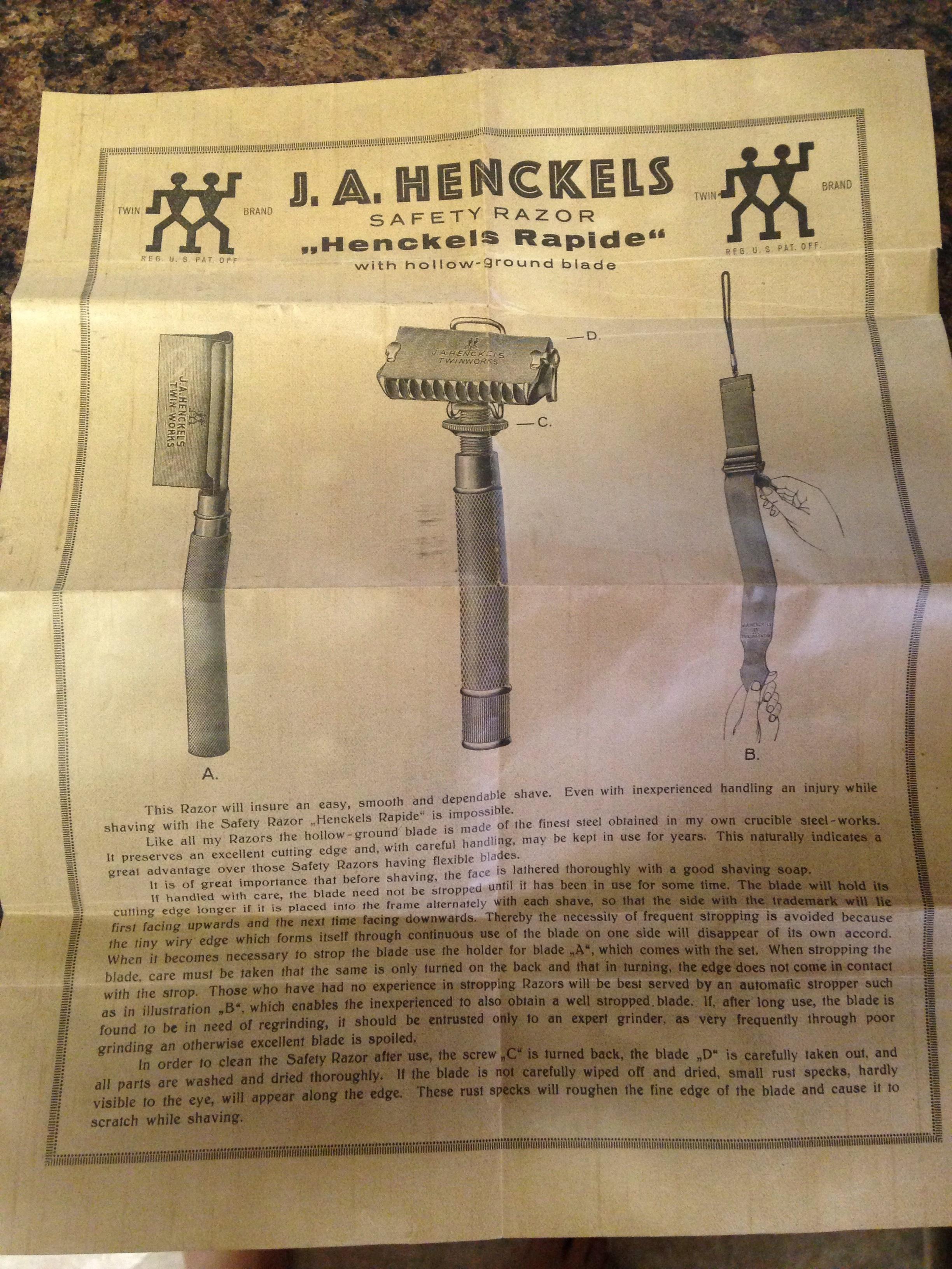 Distinguishing marks Henckels on blades and razor