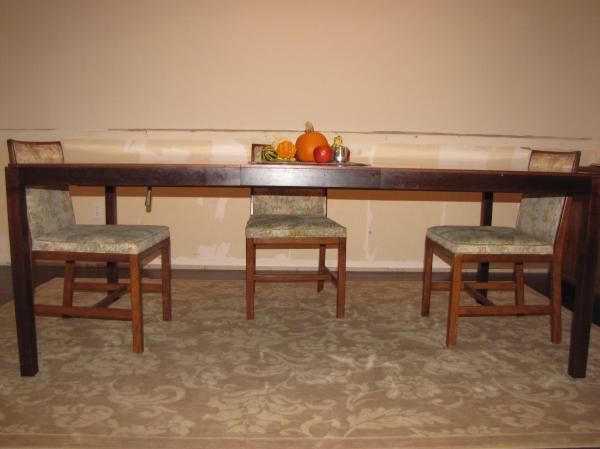 I do not know much about this table except that it belonged to my grandparents and I believe it was made by the Henredon Company. It includes 2 leaves.