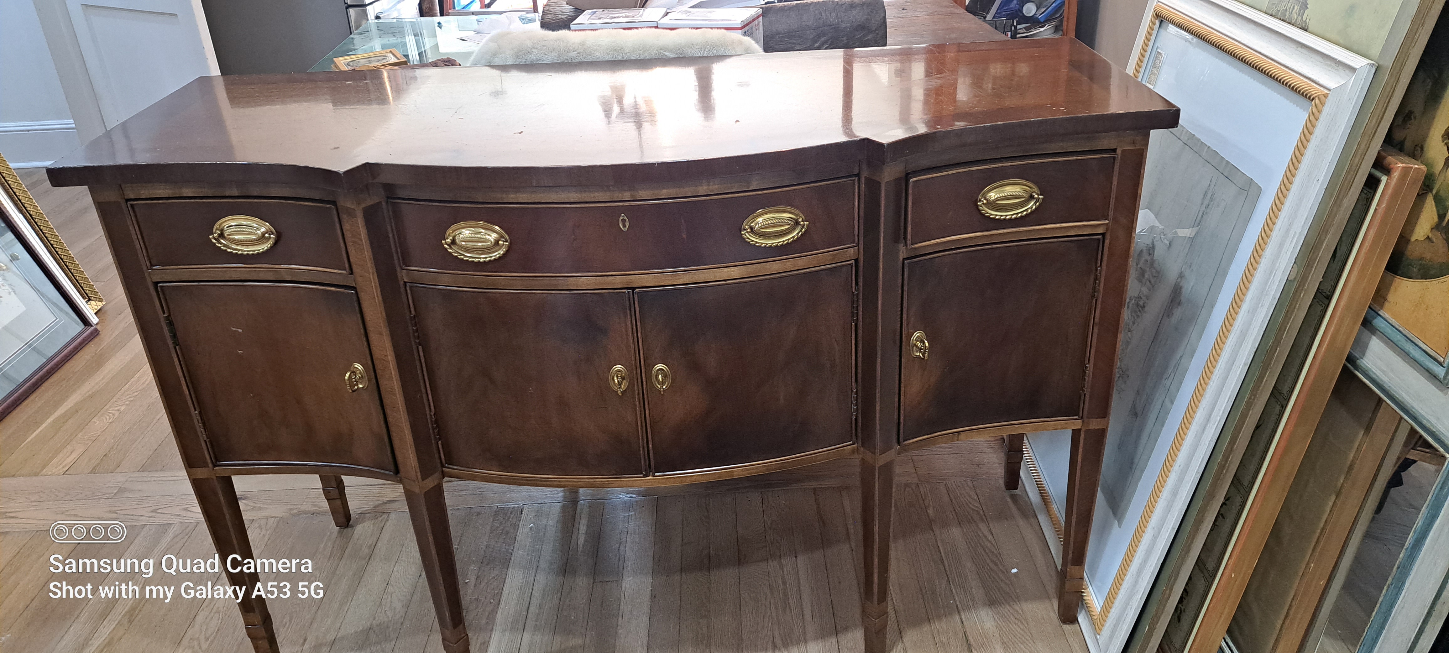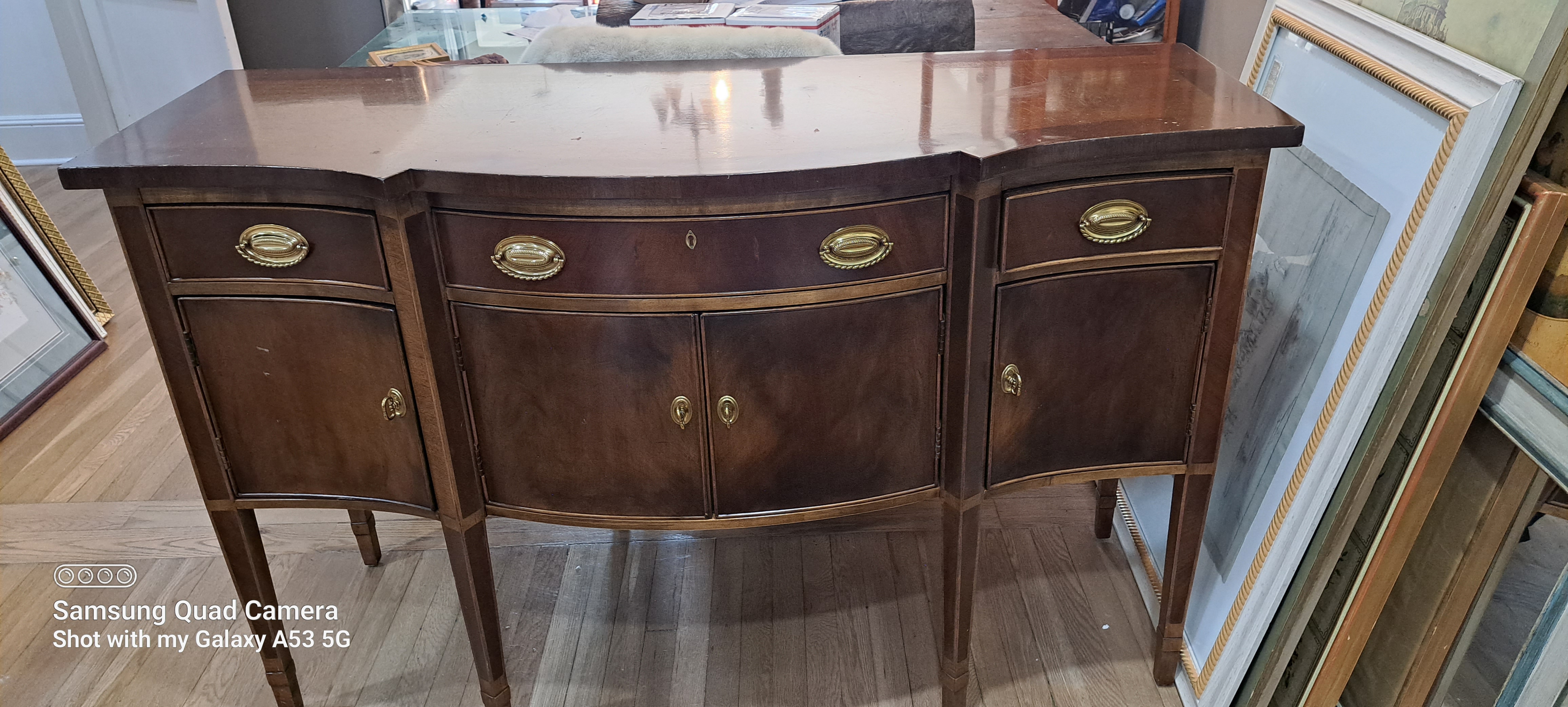 This beautiful and original Henredon Cabinet is in great condition. It's genuine Henredon and as far as I know the name speaks for itself. Henredon is on the inside of the top right drawer, as well as on a gold placard on the upper left corner if you're looking at it from the back. Minus a couple scratches on the top it is in overall excellent condition