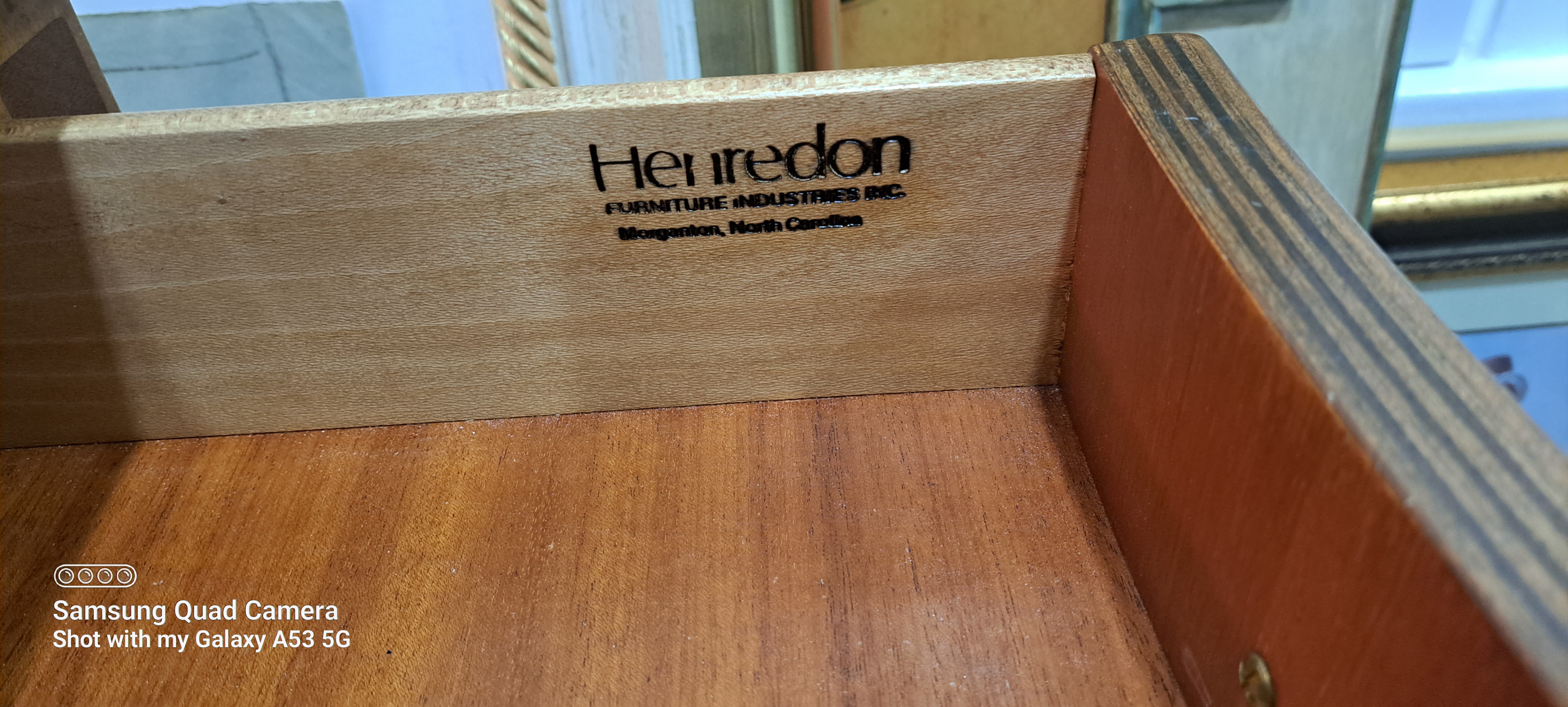 Distinguishing marks The Henredon name on inside upper right drawer as well as on the gold placard on the back upper corner.