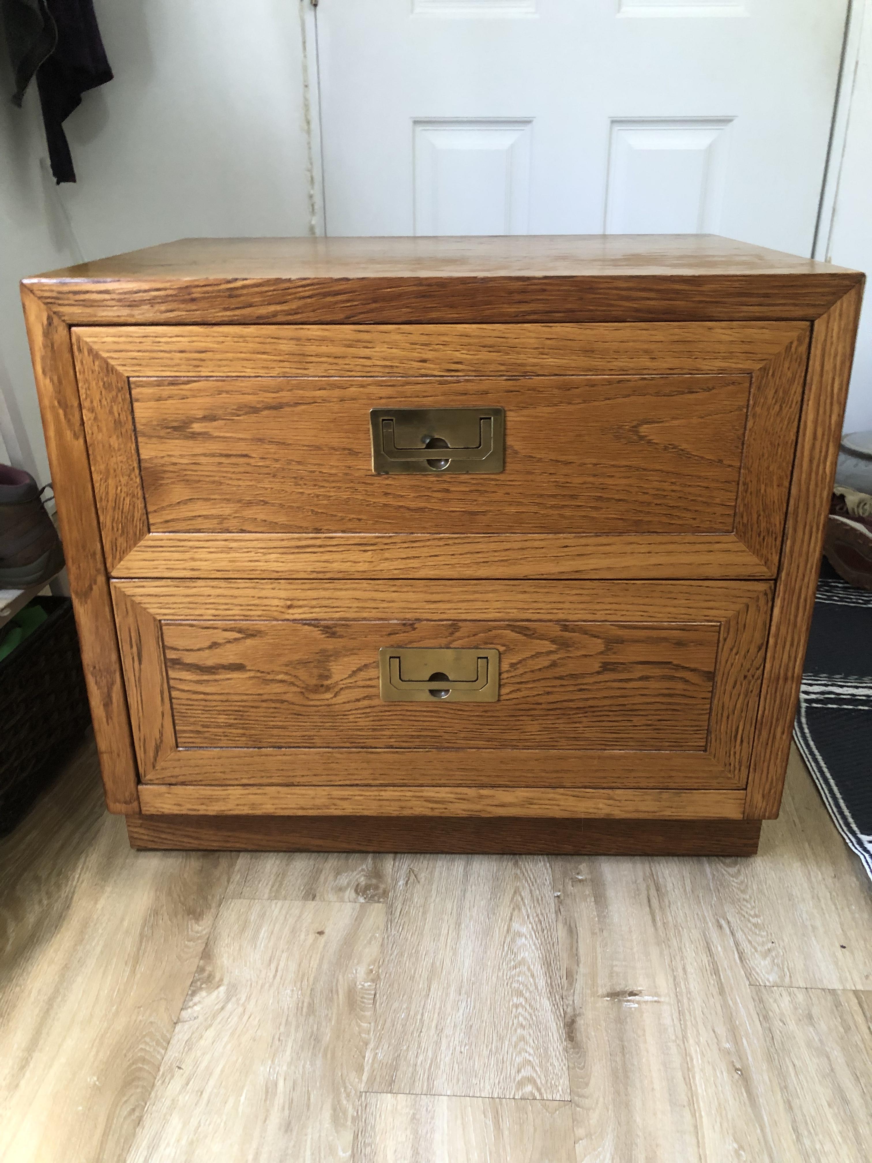 I’m not sure what the value is on this piece. Henredon 2 drawer nighstand . I think it’s scene one, campaign style . Unaltered