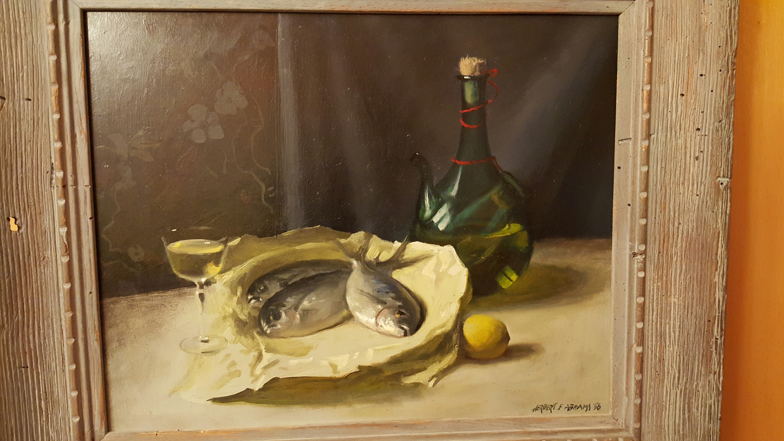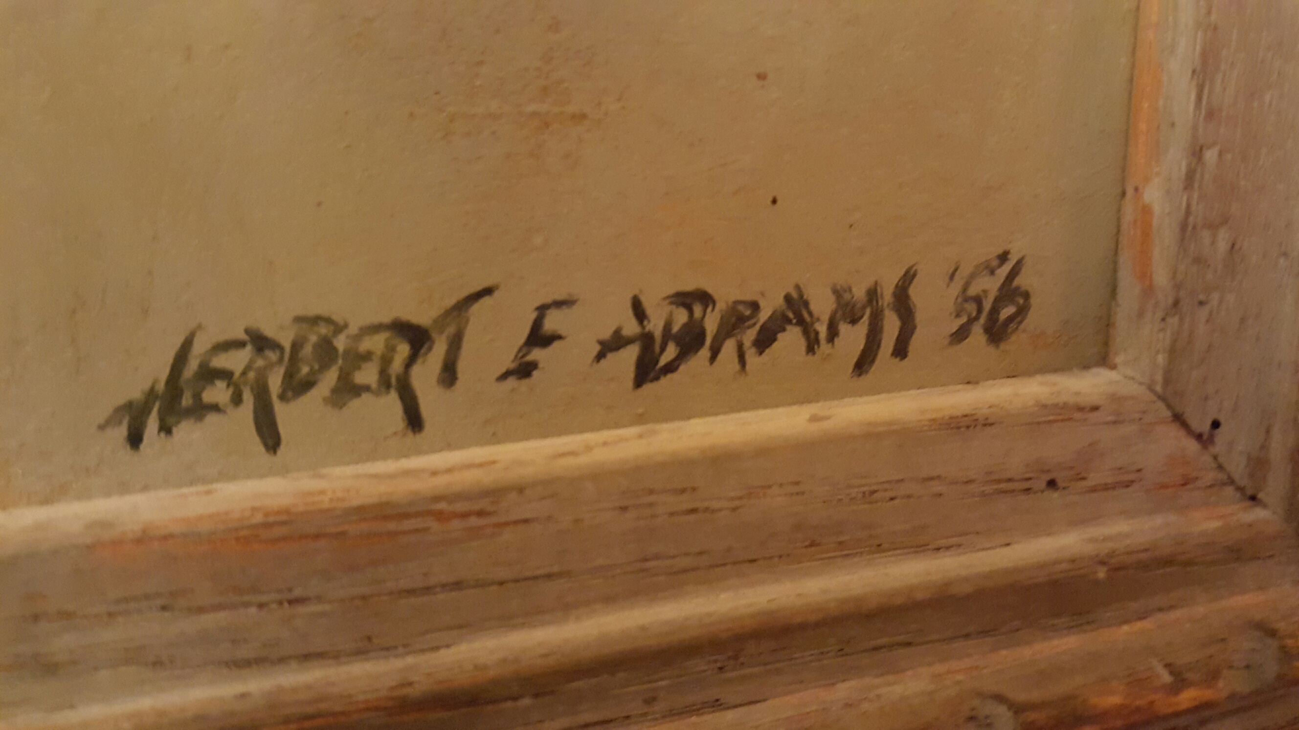 Found this in my Parent's house. It has a plaque at the bottom saying it won the Cherry Lane Restaurant Award from the Washington Square Art Exhibit. The painting is in a wooden frame. The painting itself is in very good condition but there are a few holes in the frame. It's been hanging in the same spot out of the sun for the past 40 or so years.