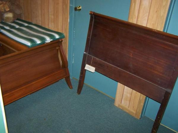 This is a complete single sleigh bed. I really do not know anything about the history of it.