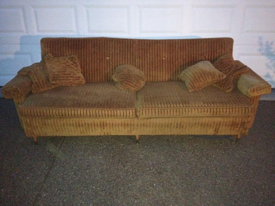 I have a loveseat sectional that looks like a Heywood Wakefield that I recently saw on line. I have had the sectional for three years now and got it at a thrift shop for $90. I was wondering if it was a Heywood or not. It is a fabric sectional and has two boluster pillows. It has square feet that have a metal gold/bronze tip on each end.