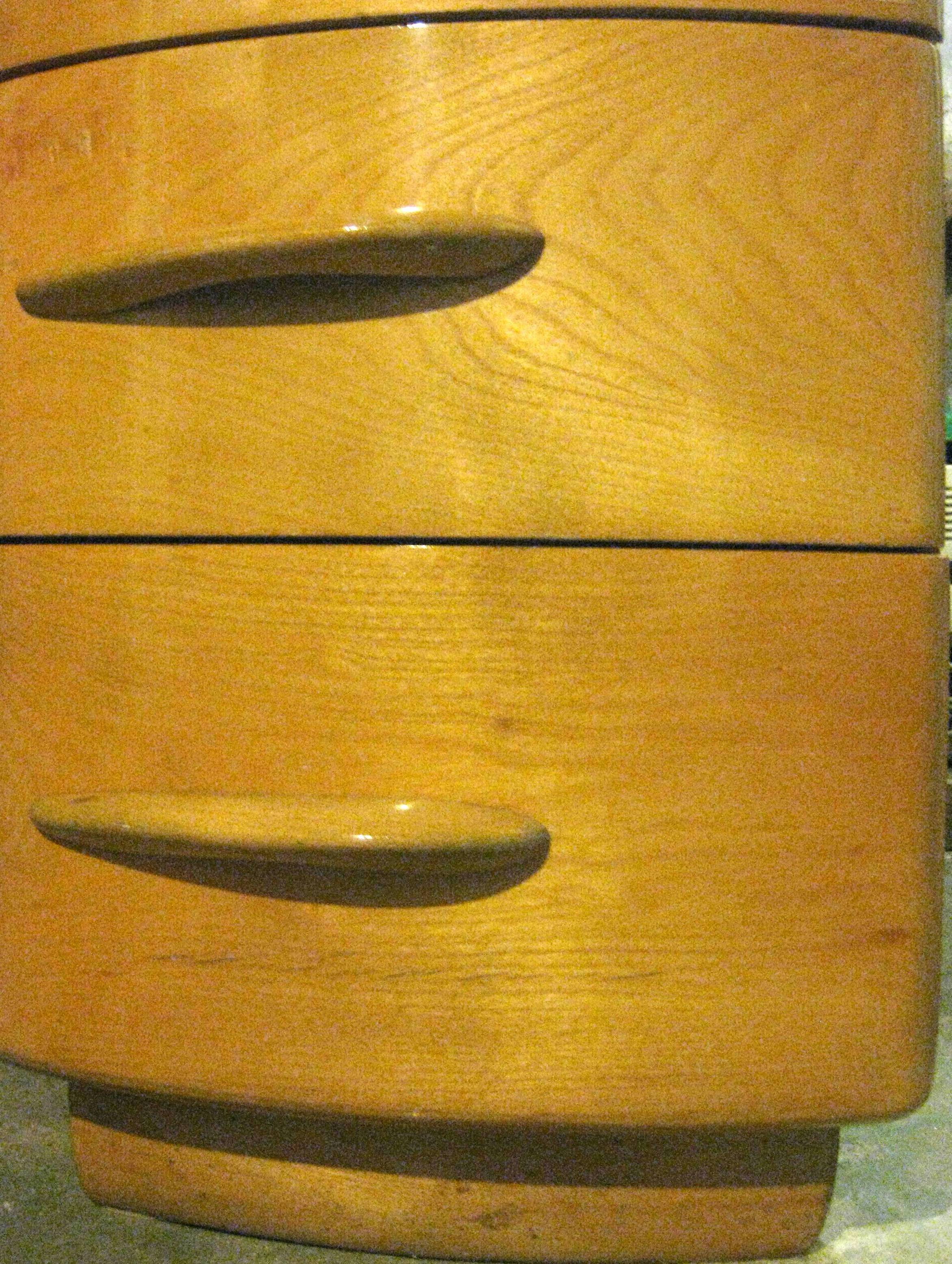 Distinguishing marks Heywood-Wakefield logo stamped in the inside of the drawer.