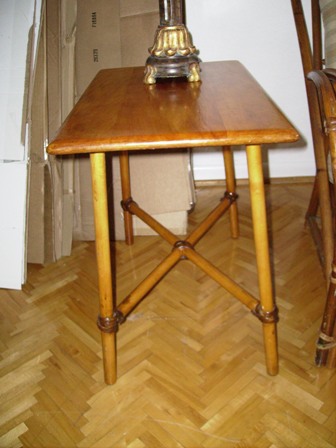 Medium Rattan couch and chair, birchwood tables