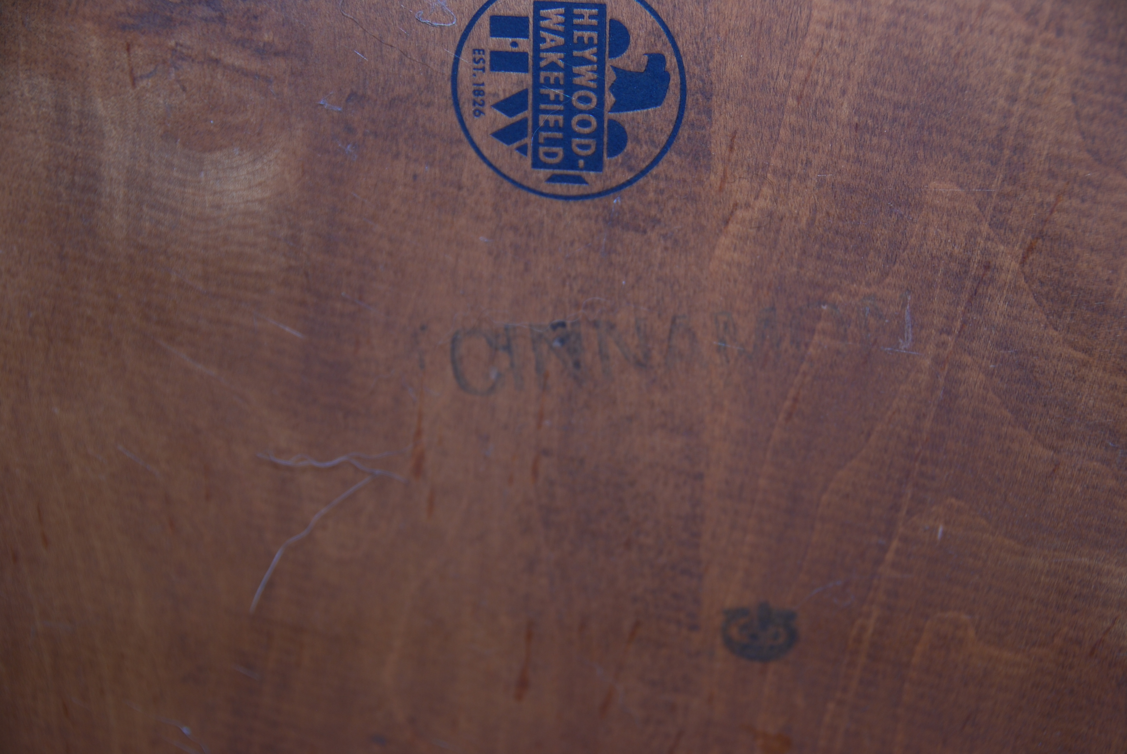 Cinnamon is also on bottom of side table along with the Heywood-Wakefield logo.