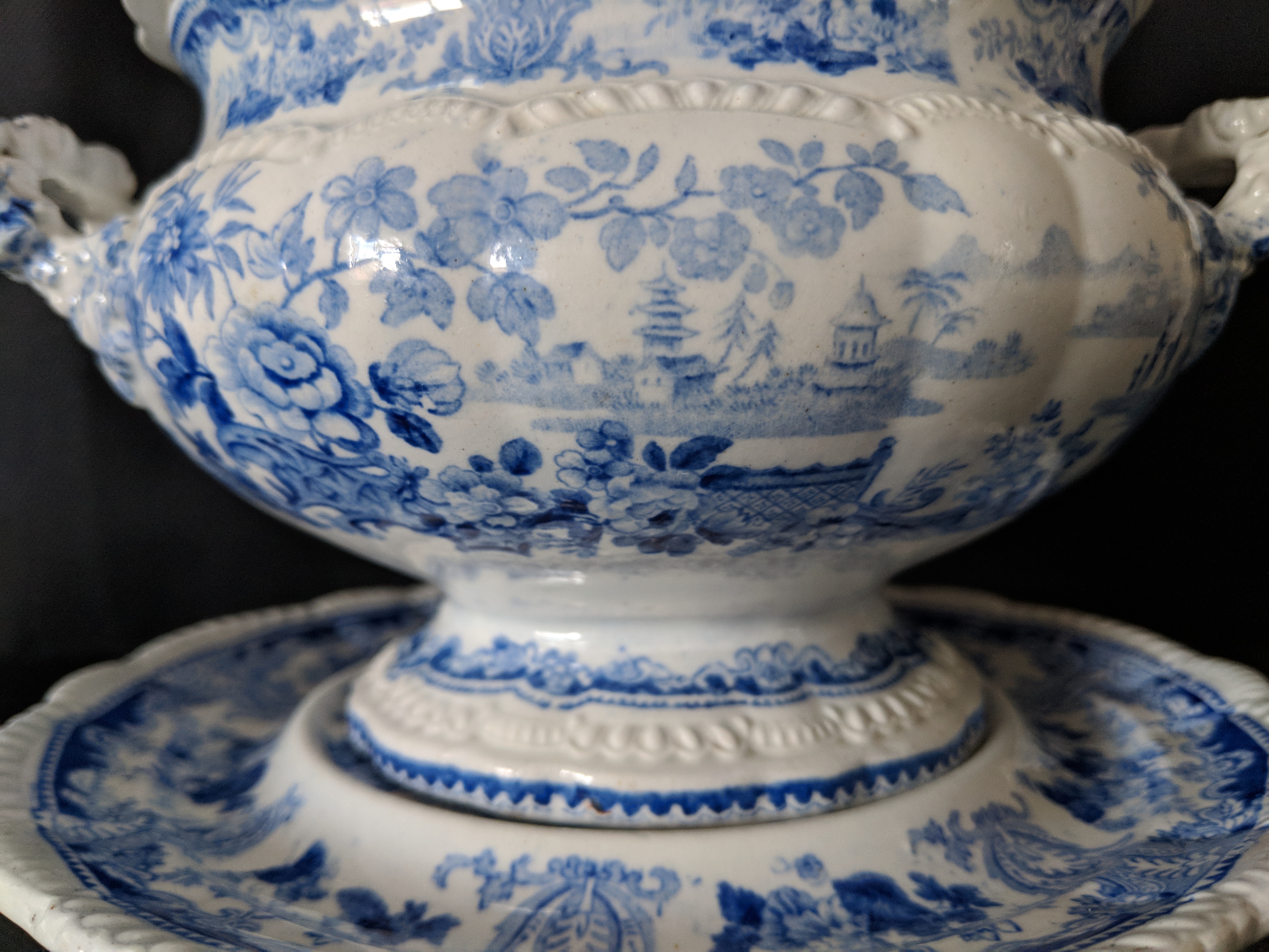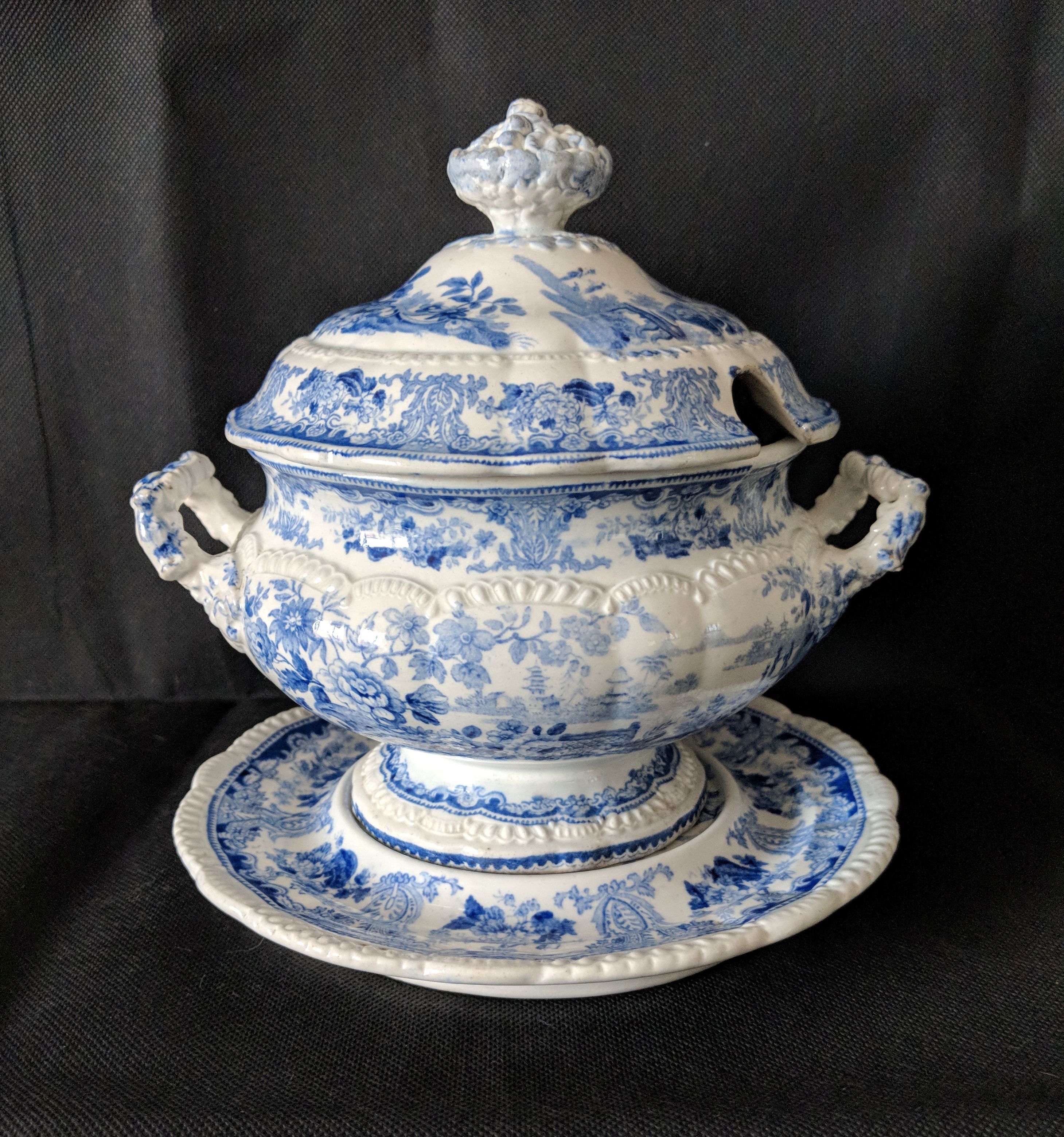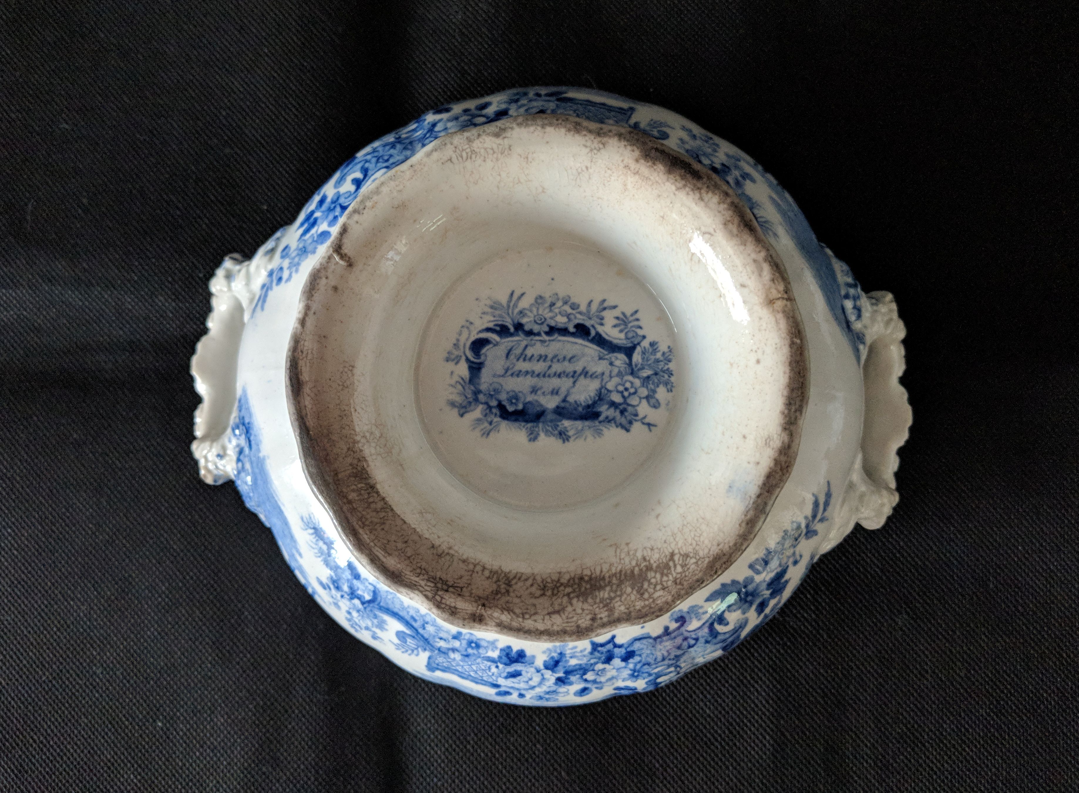 My mum has some pottery by hicks and meigh. It's an identical pair of turren sets with saucer bases and all marked in chinese landscapes pattern. There is some wear to both sets, one set in bit worse condition with a small chip to the saucer and a larger one the underside of the tureen lid.