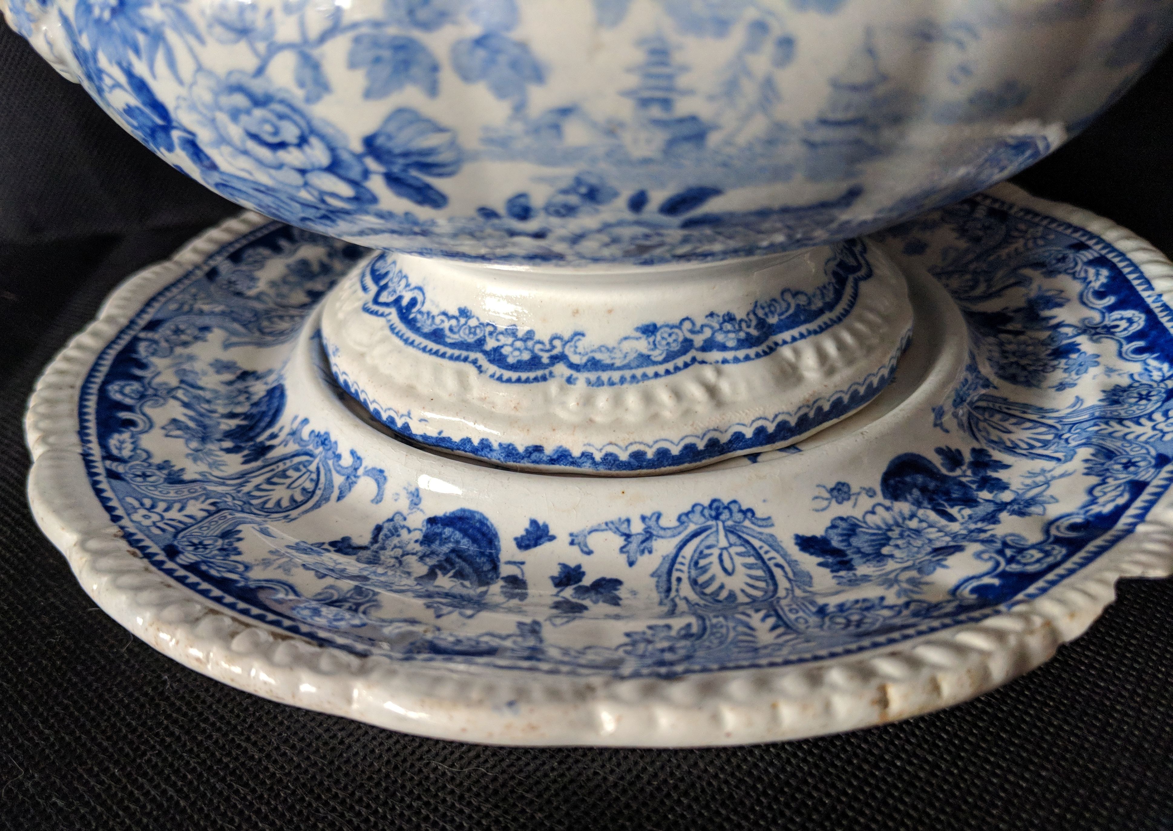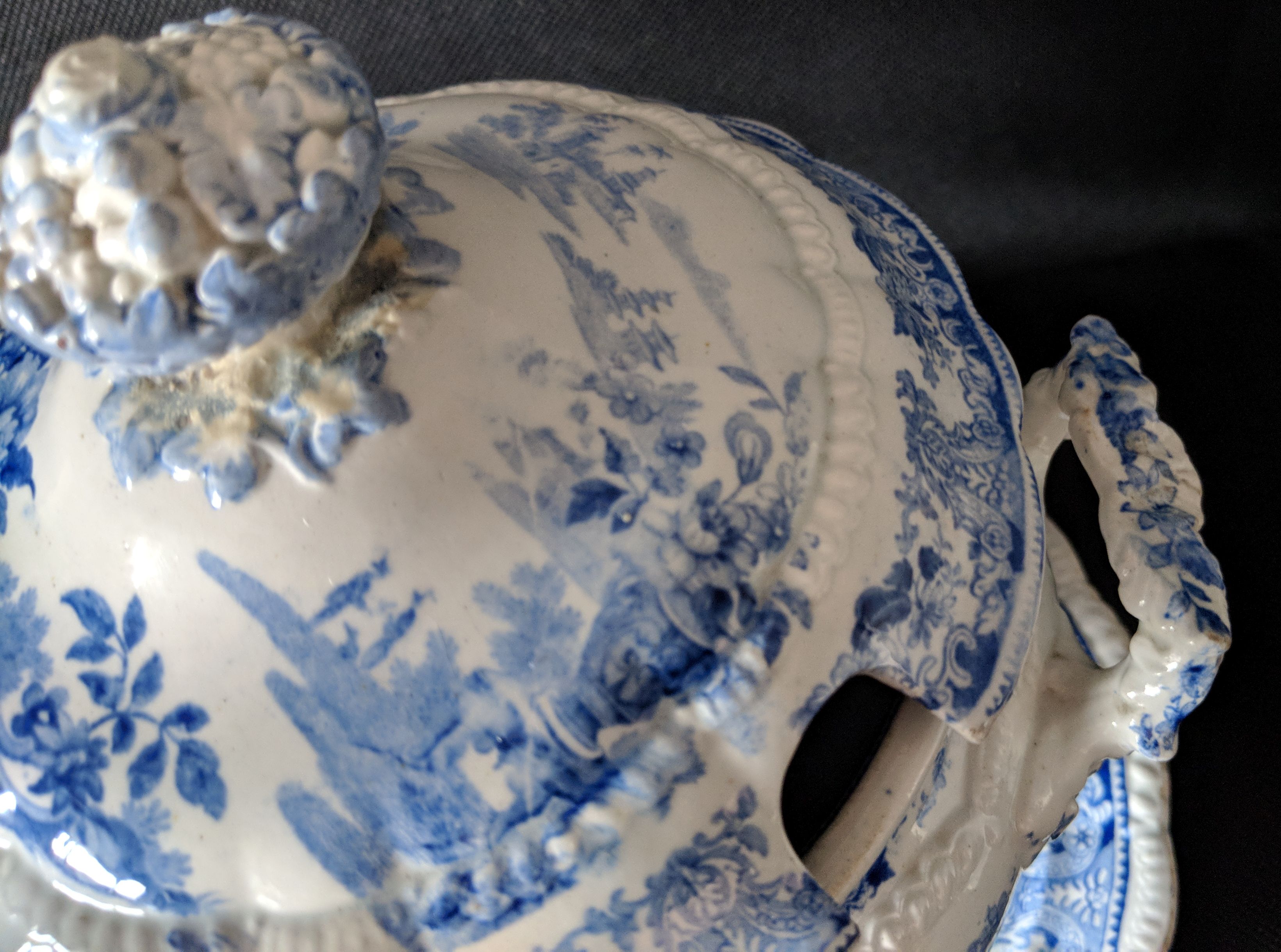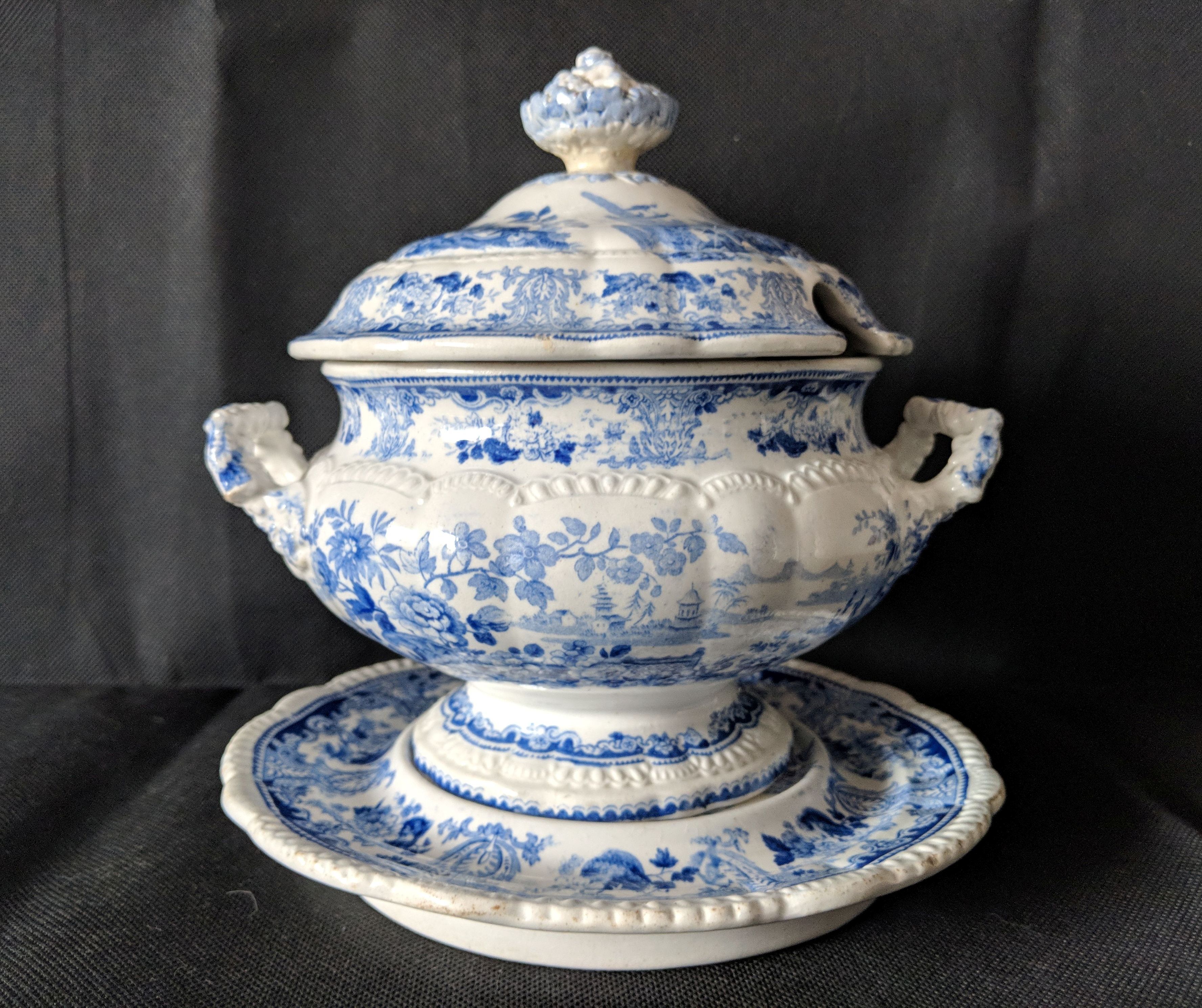 My mum has some pottery by hicks and meigh. It's an identical pair of turren sets with saucer bases and all marked in chinese landscapes pattern. There is some wear to both sets, one set in bit worse condition with a small chip to the saucer and a larger one the underside of the tureen lid.