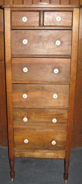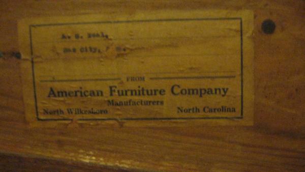 This high boy was bought by my great grandmother in the late 1800's in Sac City, Iowa. I know it was shipped in from out of state. It is in great condition, but doesn't have the original drawer pull on it any more. There is a tag on the back of it that says "American Furniture Company" and it shows a name and the town it was shipped to which is Sac City, IA.