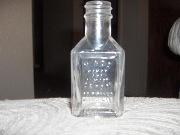 HINDS HONEY AND ALMOND CREAM, rectangular clear glass bottle, bottom of the bottle it says A S HINDS CO., it is a screw top bottle, the bottom is 1 3/4" by 1" and is 3 3/4" high.