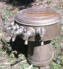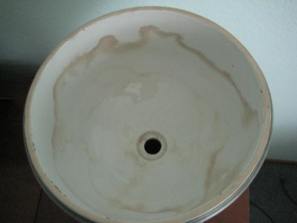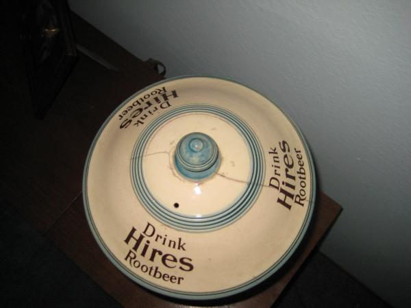 Original lid, crack, syrup stains inside, no spigot, blue trim, made by Villeroy Bosch Metlach.