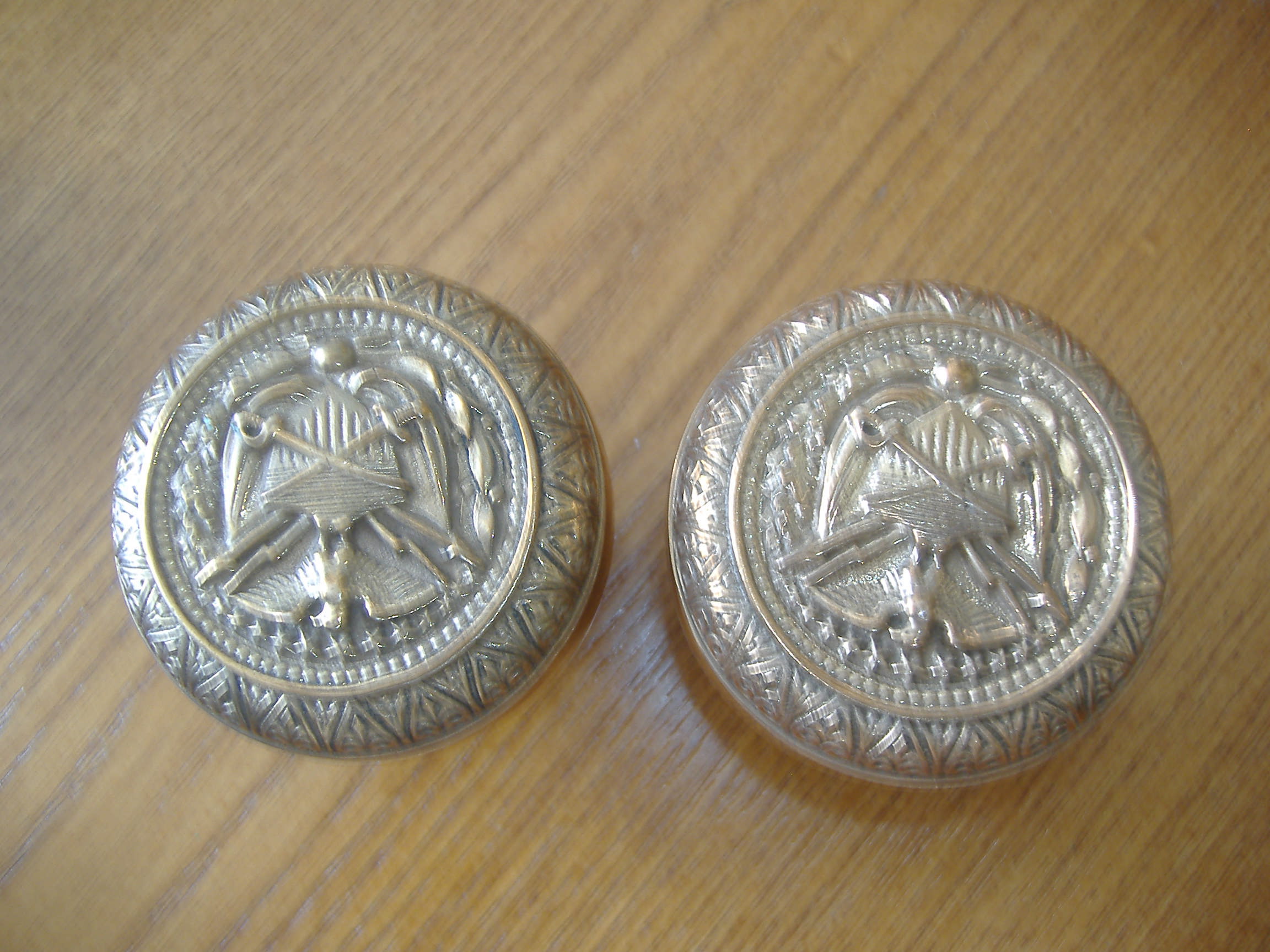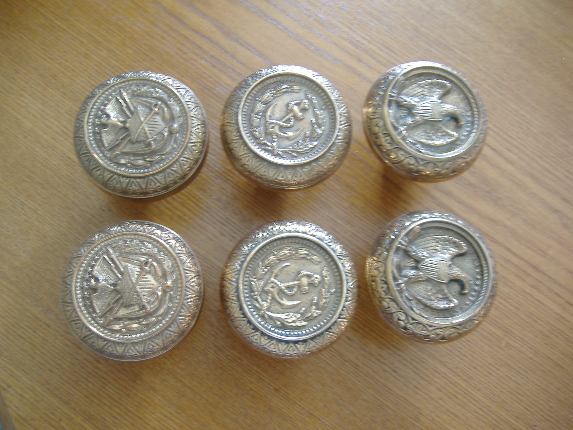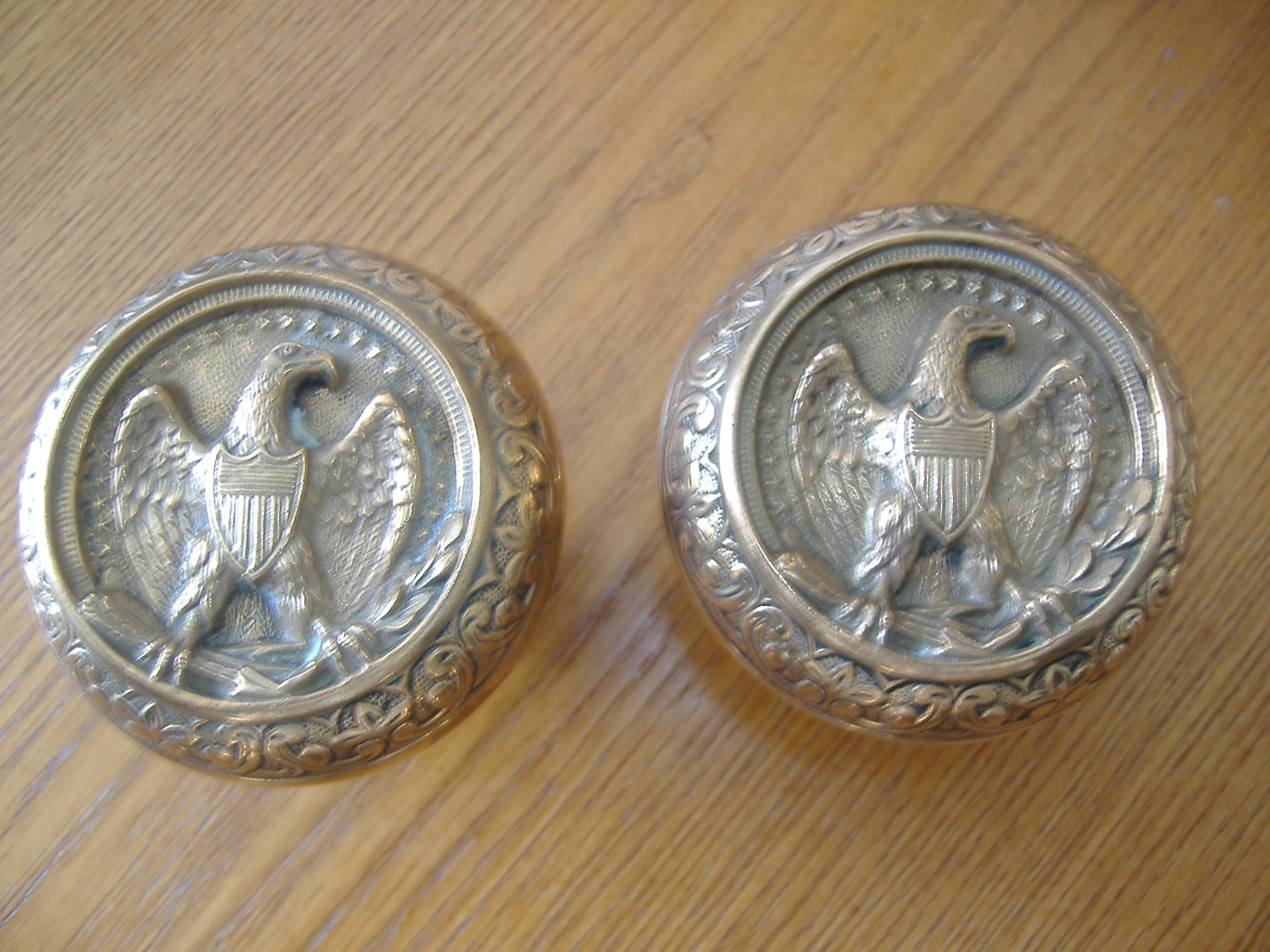 Grandfather was a locksmith and passed away 2 years ago...was sorting thru his belongings and came across these door knobs...All locksmith work performed was governmental...I can remember when he told me that these knobs were very special...because of the hands that touched them. He told me that these knobs were removed and replaced with newer style knobs....so im not sure what the value if any would be on these executive knobs....very beautiful desinged as you will see in pics. Just trying to get some input on these knobs.
