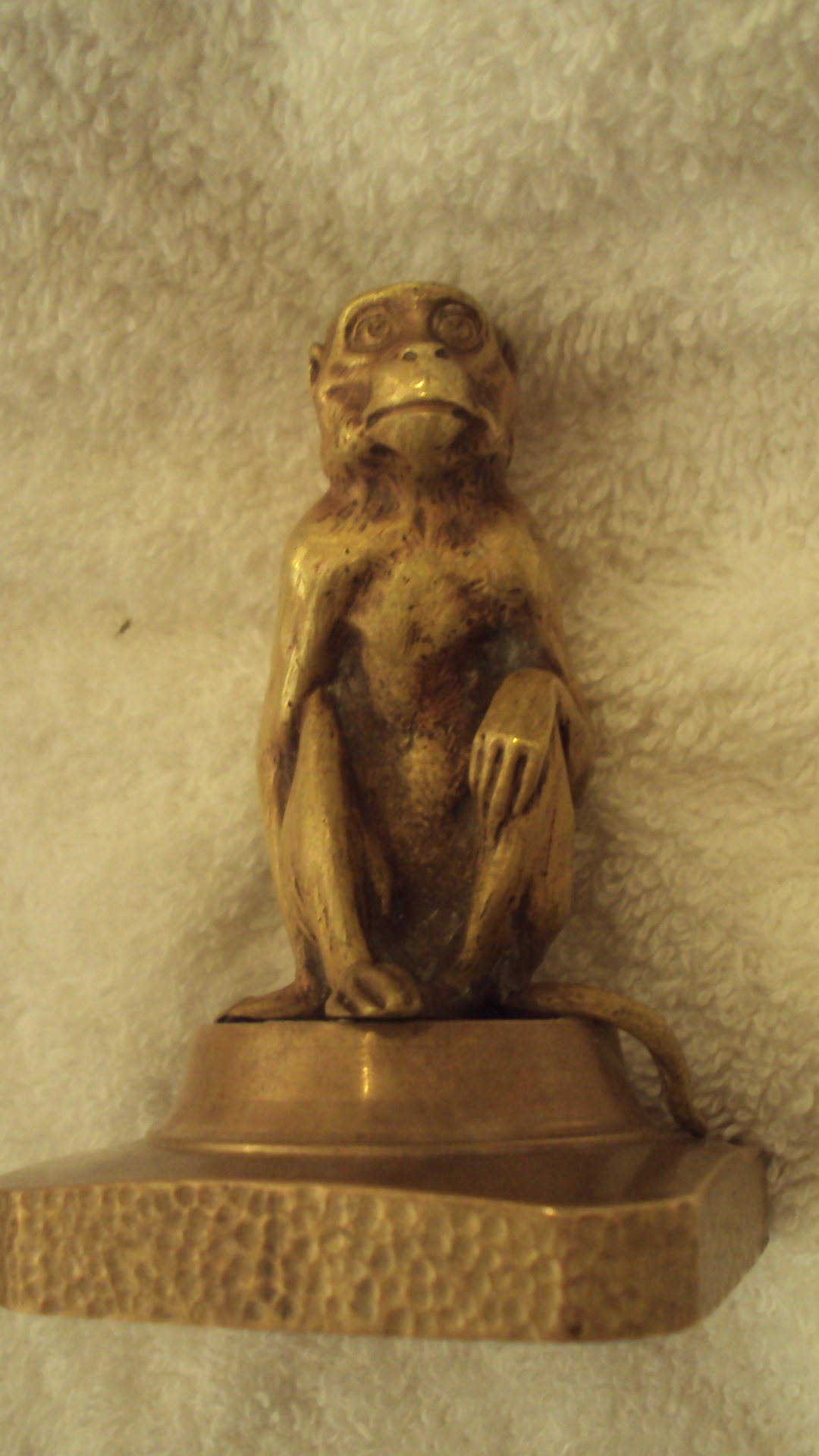 This monkey was "stole" off of Hitler's desk in WW2 by my grandfather,so the story he told.I do have the newspaper clipping of where he and his batallion hijacked a train and was pulling a surprise attack on his compound.to capture him ( Hitler).When they stromed his place he was some how tipped off and was already