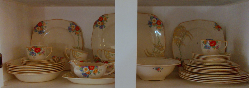I have an H&K Tunstall china set that my mother found in an old house when I was young. It has stayed in the family over 35 years and just recently was passed on to me. The name on the back is Montrose and it does have the green unicorn with H&K Tunstall written underneath. One of the dinner plates is chipped underneath and the gravy boat has a line that almost looks like a crack under the glaze. This is not a complete set. I have:
