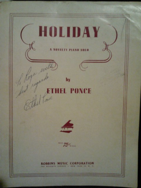 sheet music by ethel ponce 1934, song:"Holday" autographed by ethel ponce herself. very very nice condition for 78 years old.