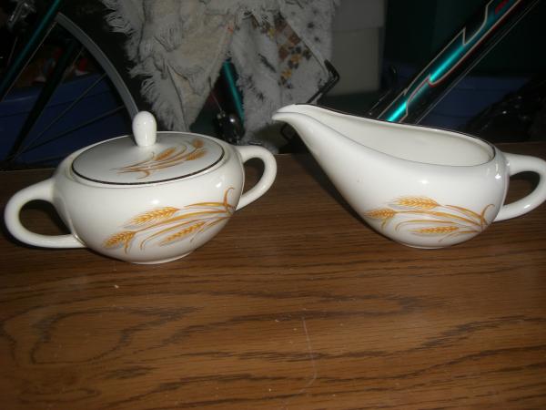 i was going through the garage and found these from college. i was going to just sell them on craigs list but went on ebay to see what going rates are. i know nothing about antiques and collectibles. i didn't know these were Homer Laughlin as there is no stamp on the bottom of them. right now they are averaging about $10-15 each on ebay. is this something i should hang onto or will it probably just stay about this price? i have no sentimental attachment to them. the sugar dish has a small scratch near the rim but for the most part there is nothing wrong with them. any direction you can give me that would be great!